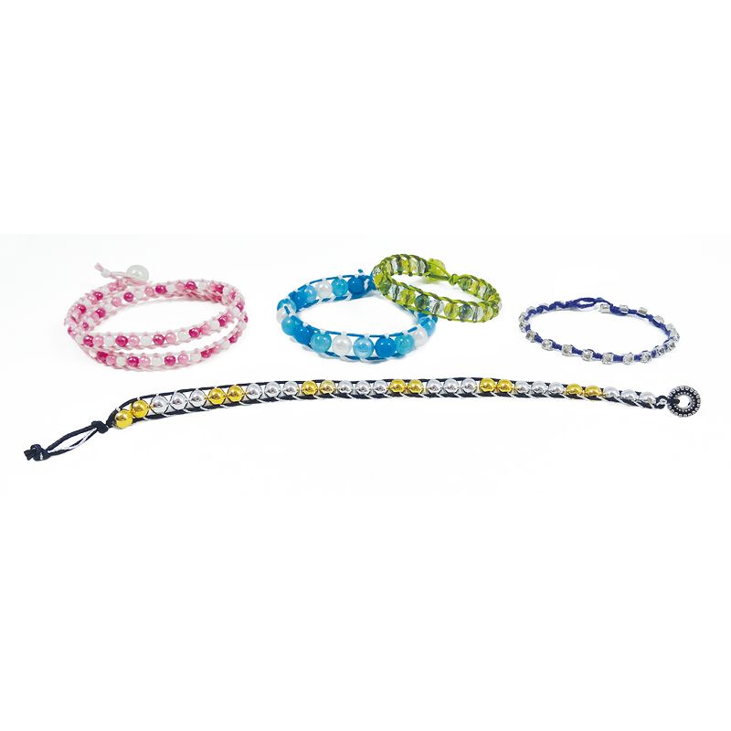 Komplektis: 1 erinevad helmed, kett (15 cm), 1 nõel, 1 pruun vahatatud niit (70 cm), 1 sinine vahatatud niit (70 cm), 1 roheline vahatatud niit (70 cm), 1 valge vahatatud niit (140 cm) , 1 valge puuvillane niit (120 cm), 1 roheline puuvillane niit (120 cm), 1 hõbedane puuvillane niit (120 cm), 1 lilla puuvillane niit (120 cm), 1 roosa puuvillane niit (240 cm), 1 juhendi leht värvi.