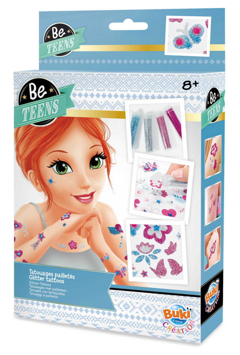 Pakend sisaldab: 4 sädeluspulbrit, 2 kahepoolse liimiga tattoo lehte, liimitavad teemandid.