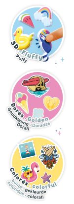 Buki kleebiste komplekt – Suvi sobib kiireks ekraanivabaks meisterdamiseks ja puhtaks kaunistamiseks. Suvine teema aitab luua stseene joonistustele, meisterdamisalbumitesse ja reisitegevusteks. Tasapinnalised, metallilise kontuuriga ja pehmed 3D-kleepsud annavad tekstuuri ning aitavad lapsel detaile paremini paigutada.