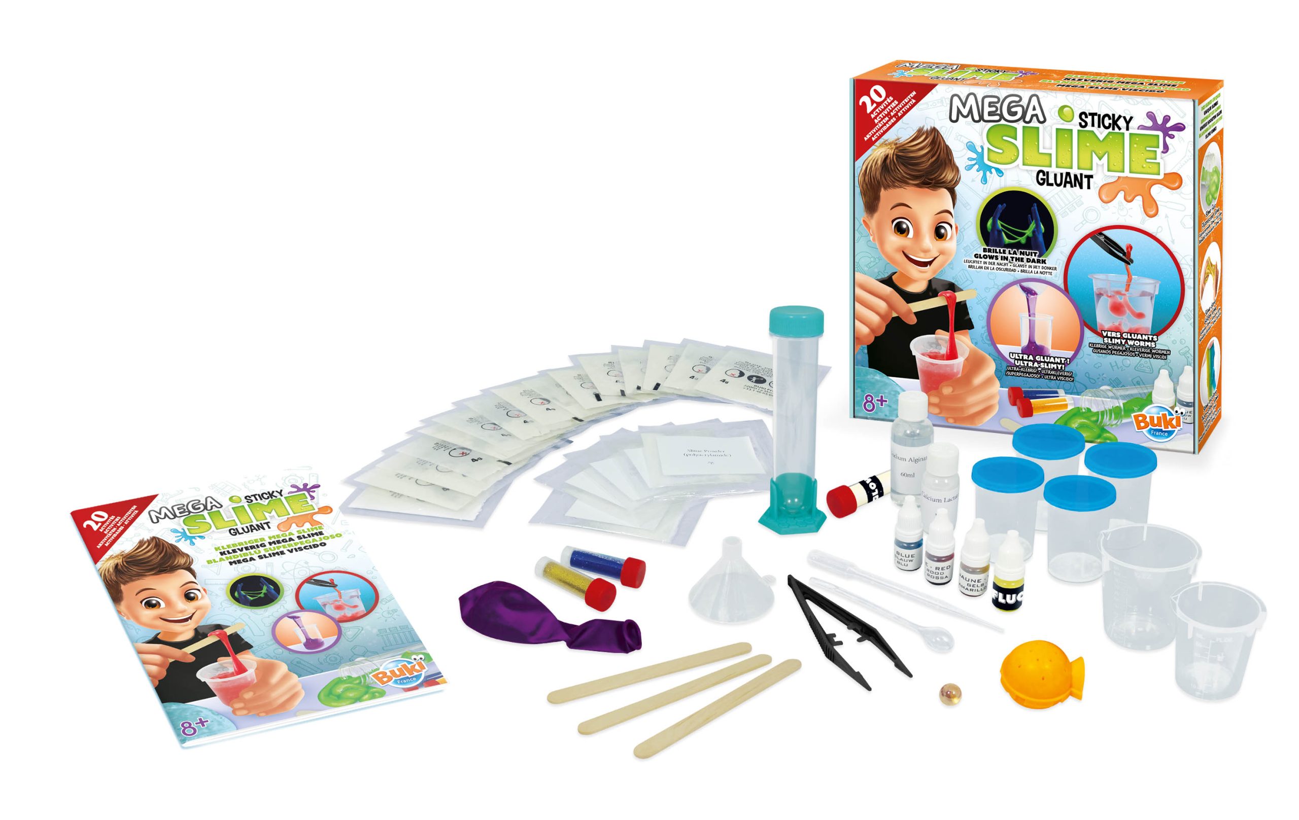 20 erinevat võimalust. Pakendis on: 15 pakki limapulbrit, 5 pakki ultra limapulbrit, 3 värvi (sinine, punane, kollane), 3 sädelust, 2 mõõdutopsi, mõõdulusikas, pipett, pintsetid, 1 ümar vorm, 1 õhupall, lehter, 1 kuul, 1 katseklaas koos alusega, 1 pimedas helendav värv, 3 segamispulka, 4 hoiupurki, kaltsium laktaat, naatriumalginaat ja illustreeritud juhend.