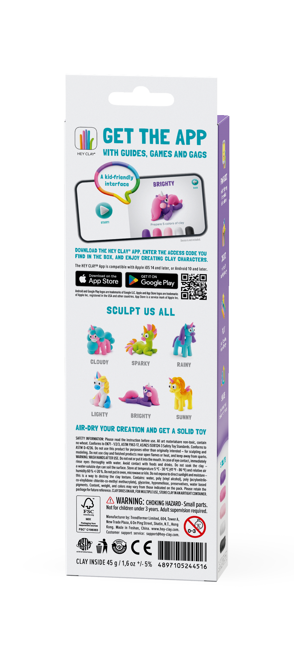 Lase loovusel lennata HEY CLAY voolimismassiga Ükssarvik Rõõmuke! Mõnusalt pehme ja kergesti vormitav voolimismass annab lastele võimaluse luua vahvaid karaktereid. HEY CLAY oluline eelis plastiini ees on, et ta ei määri pindu, riideid ega jäta rasvaseid jälgi.
