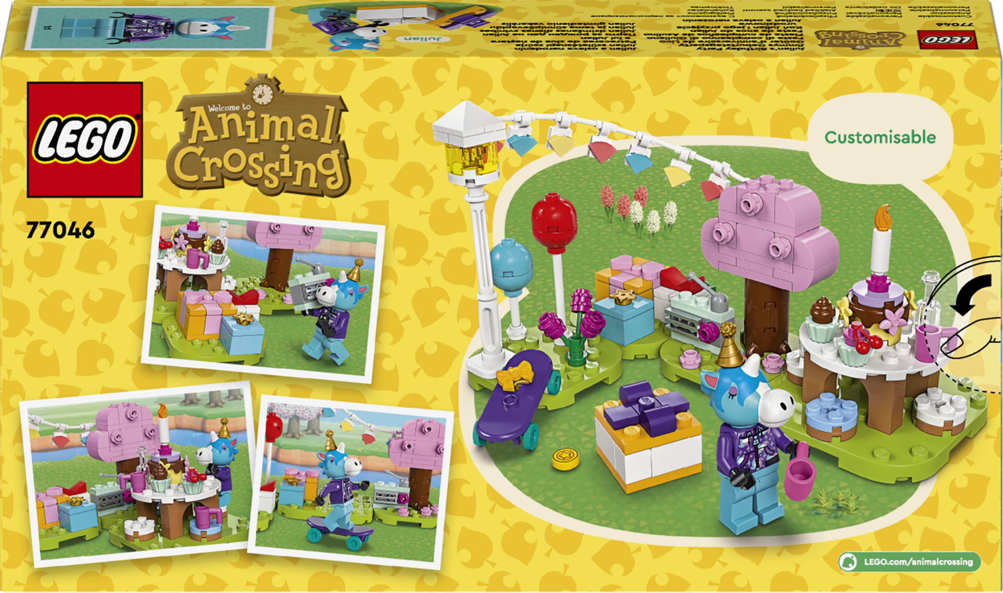 • Loova ehitamise mänguasi lastele – tüdrukud ja poisid alates 6. eluaastast saavad komplektiga LEGO® Animal Crossing™ Julian ja tema sünnipäevapidu mängida videomängude sarjast tuntud stseene ning kohandada komplekti uute lugude jaoks