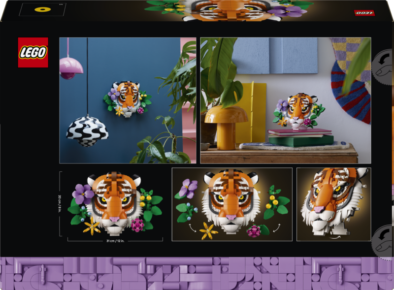 • Metsiku looduse teemaline kodukaunistus – see 3D klotsidest ehitatud raamita mudel kujutab kaunist tiigrit, kes piilub läbi dekoratiivsete lillede ja taimede kollektsiooni