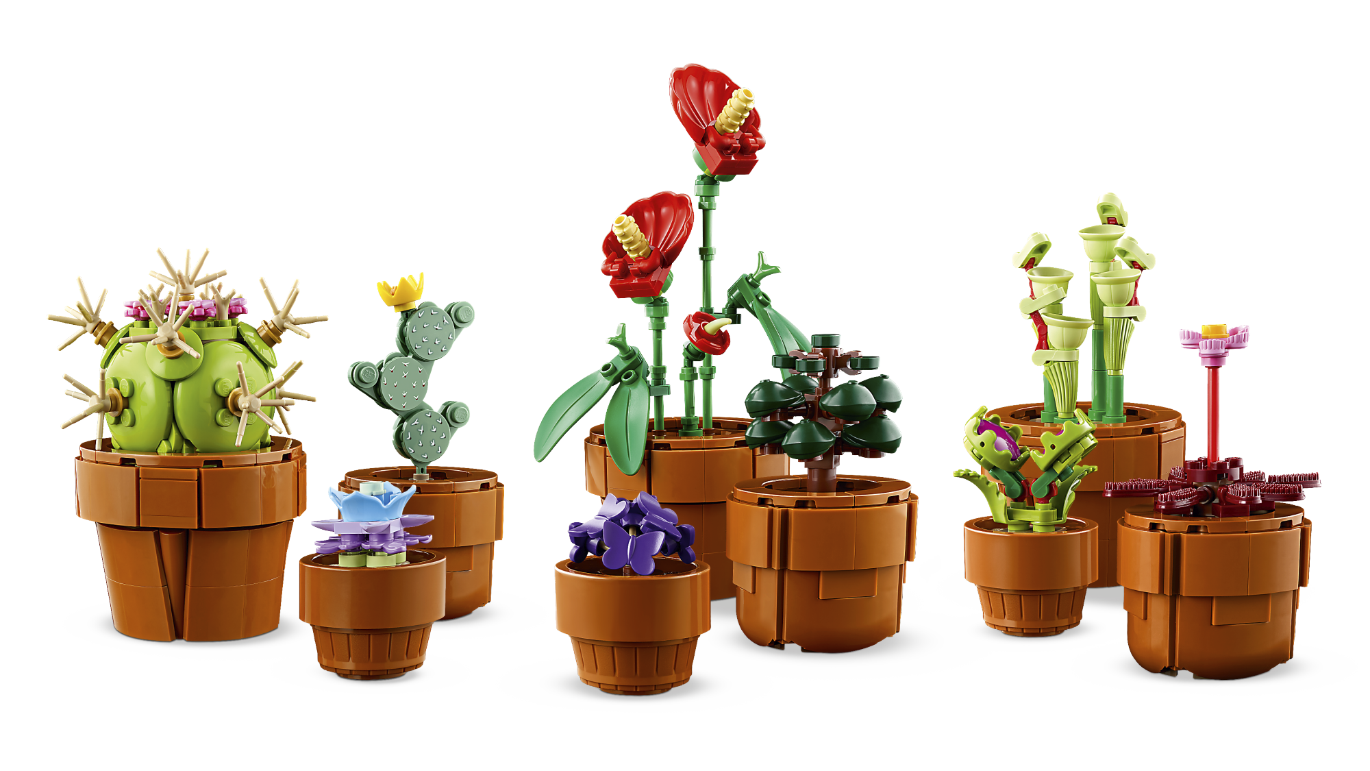 LEGO Iconsi väikeste taimede (10329) ehitusprojektis on kõrbe, troopilistel ja lihasööjatel liikidel põhinev taimestik.