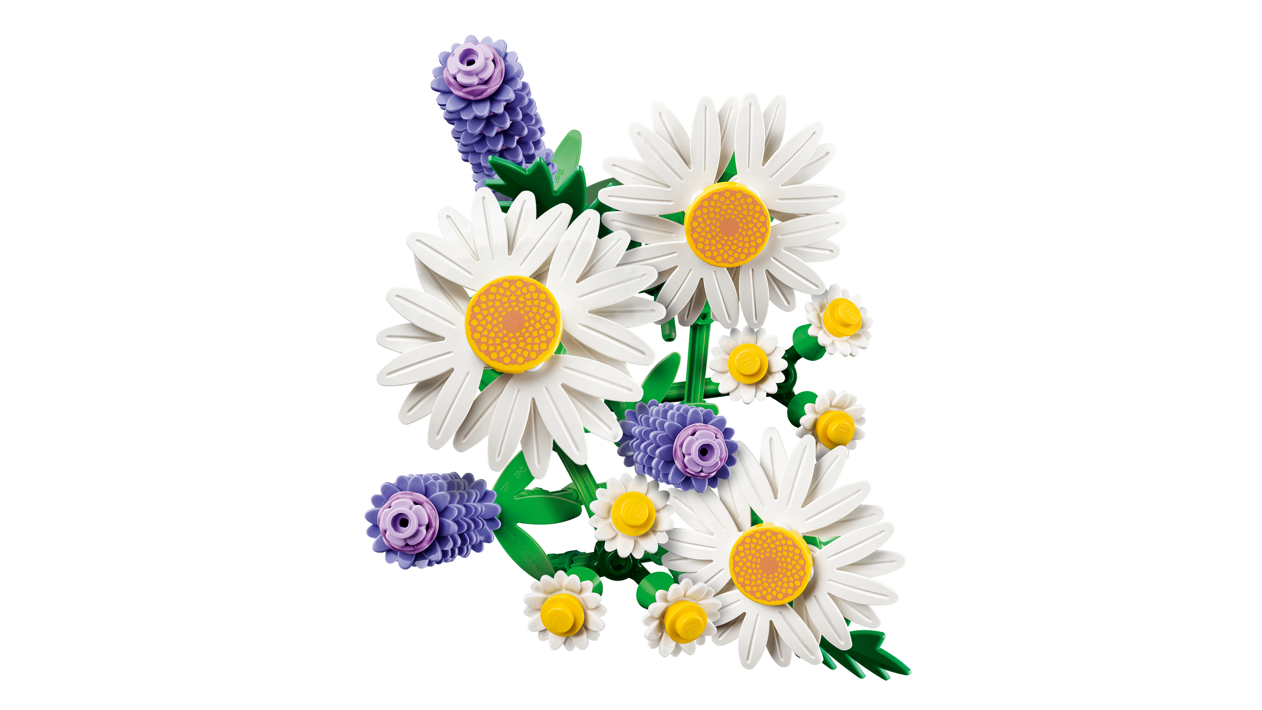 LEGO® lillekimp – Alustavatel lilleseadjatel on lõbus ehitada kolm suurt karikakart, kaks väikest karikakart, kolm rahustavat lavendlit ja erksad rohelised varred