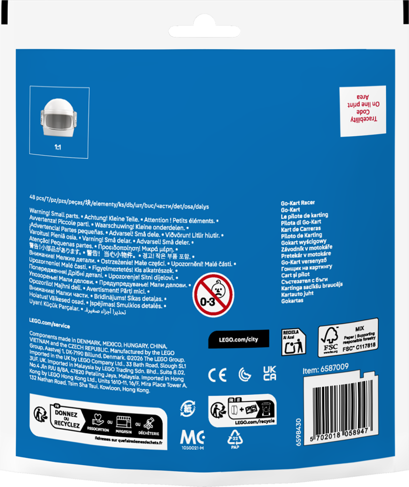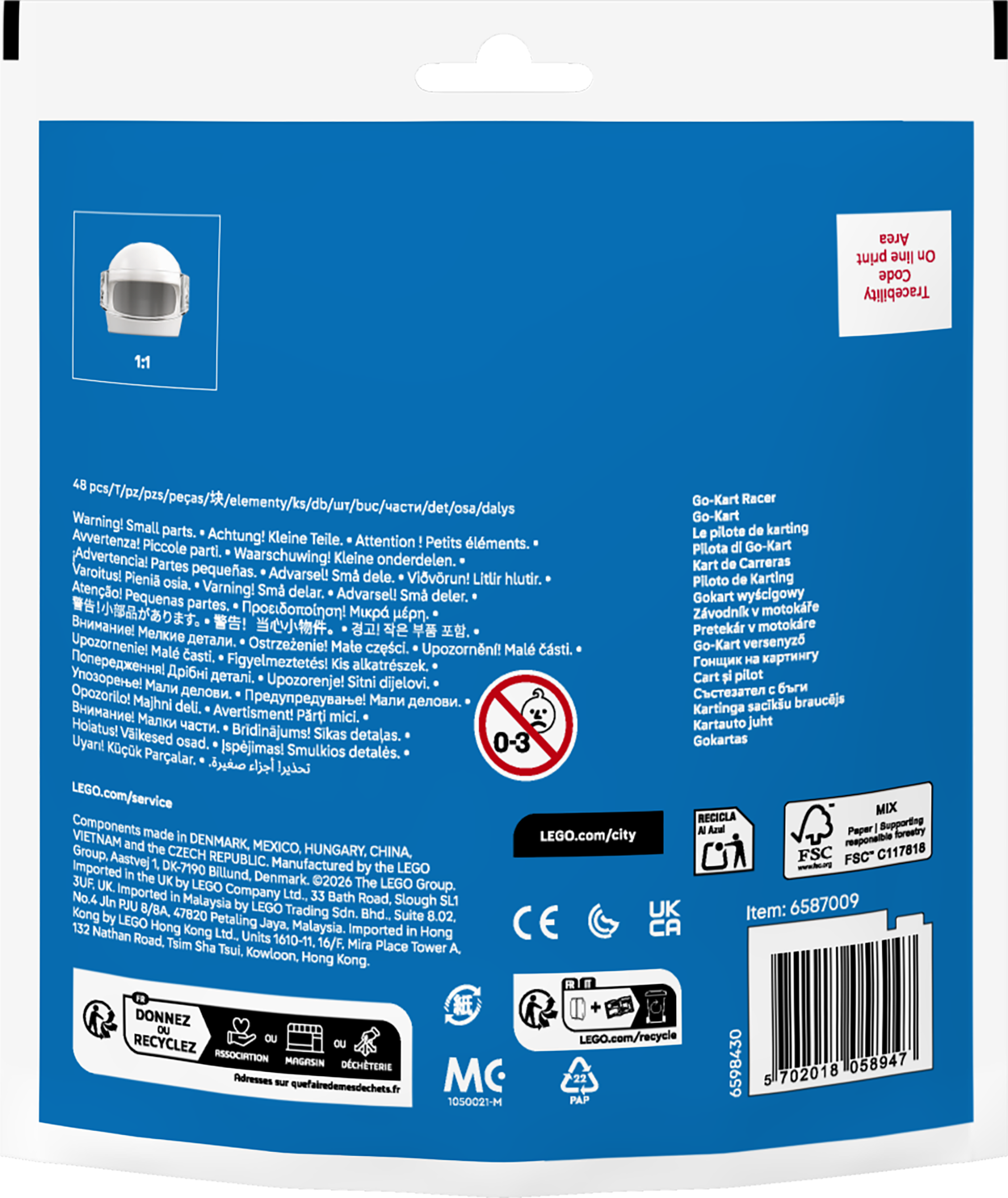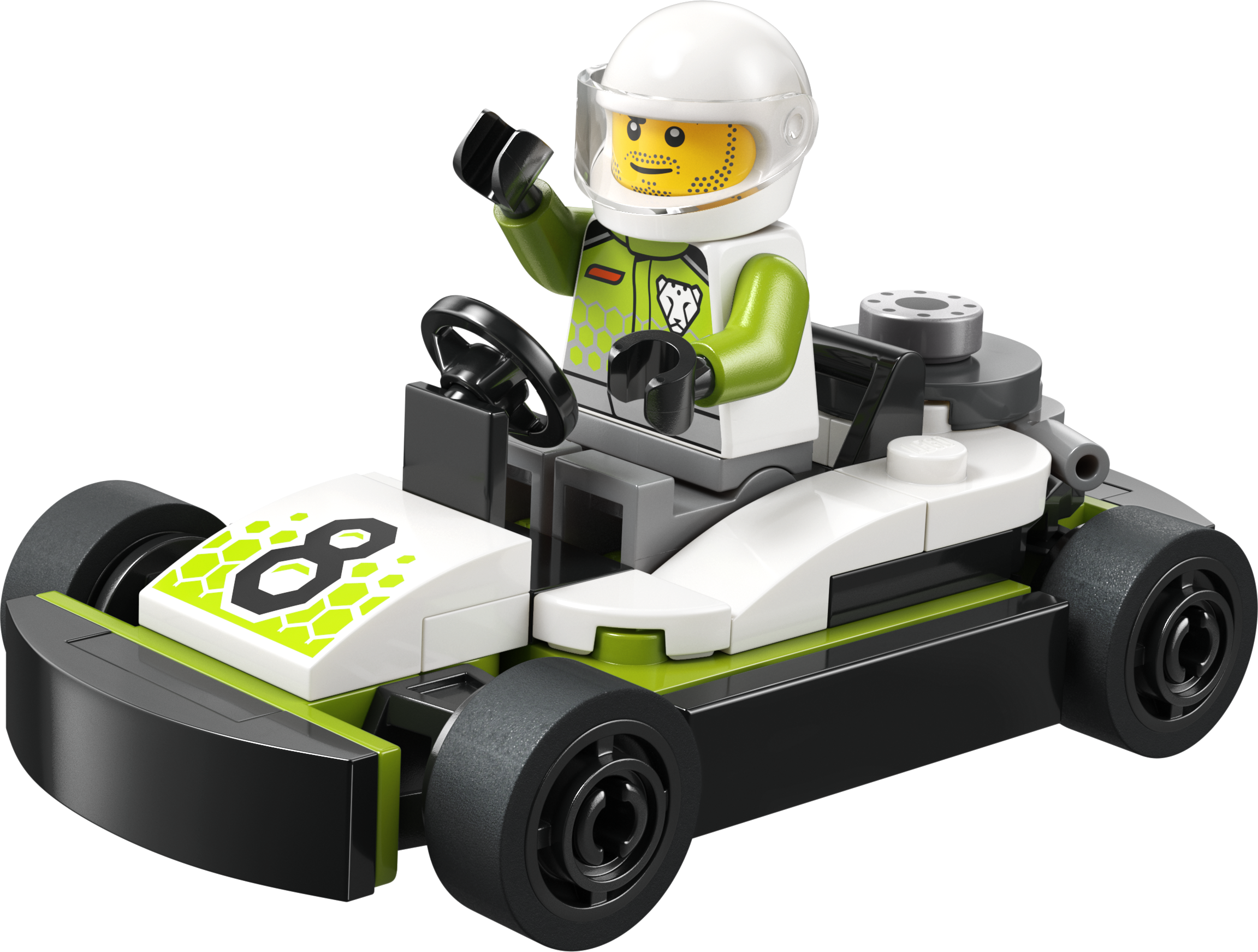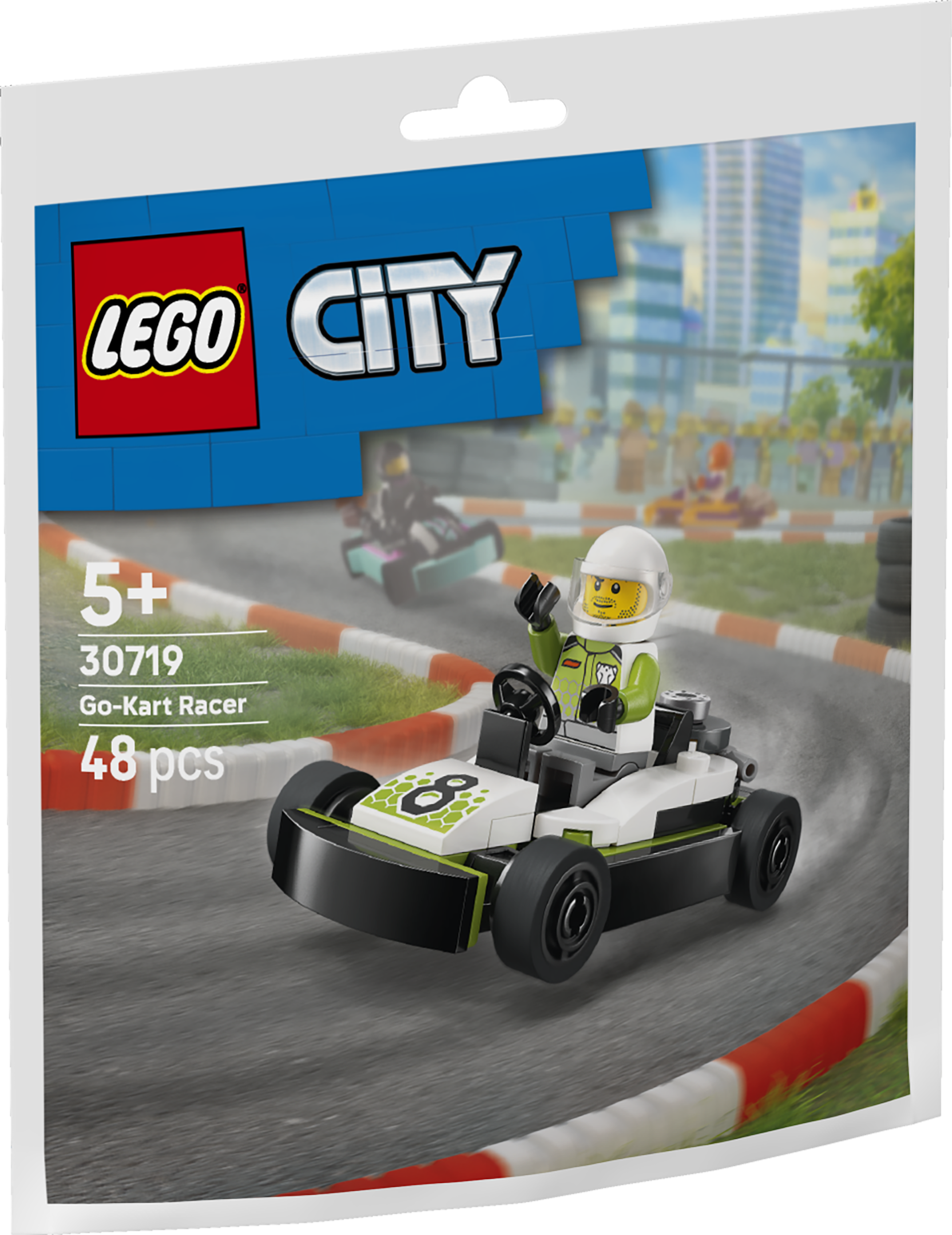 Selle LEGO City Go-Kart rallikomplektiga (30719), milles on madala profiili ja libedate rehvidega auto ning võidusõitja minifiguur, saad hoogu anda kiirele loomingulisele mängule.