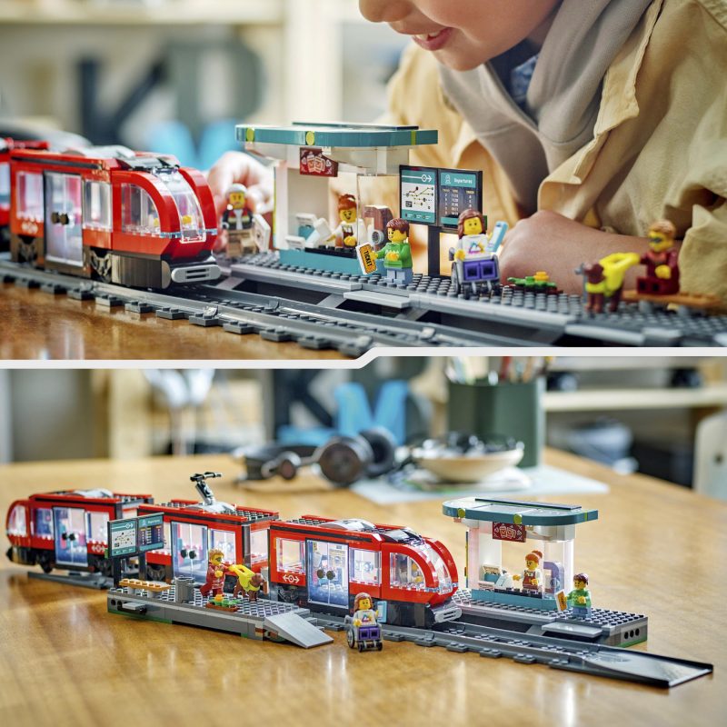 • Trammi mängukomplekt – see 7-aastastele ja vanematele poistele ja tüdrukutele mõeldud LEGO® City kesklinna trammi ja jaama komplekt meeldib kindlasti trammide ja mängurongide fännidele