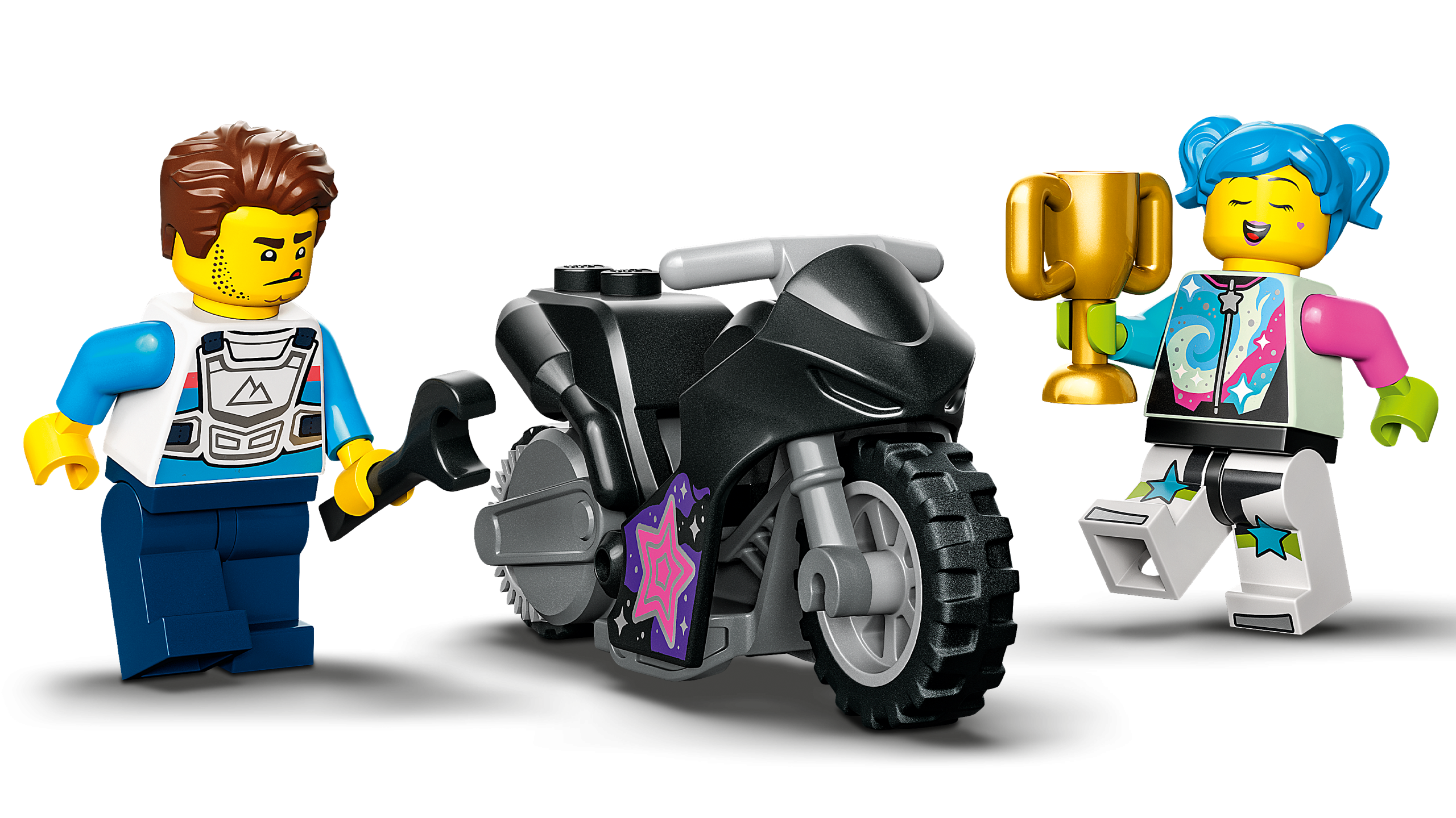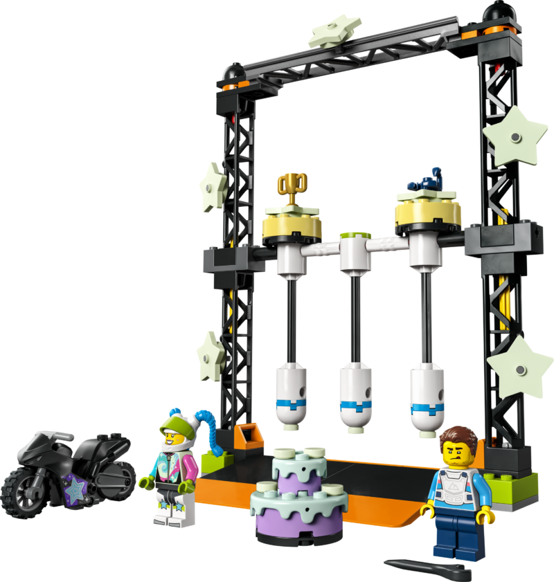 • Mis on karbis? – Kõik lapsed peavad ehitama The Knockdown Stunt Challenge’i, hooratta jõul töötava trikiratta ja telesarja LEGO® City Adventures minifiguurid Galactic Poppy Star ja Harl Hubbs