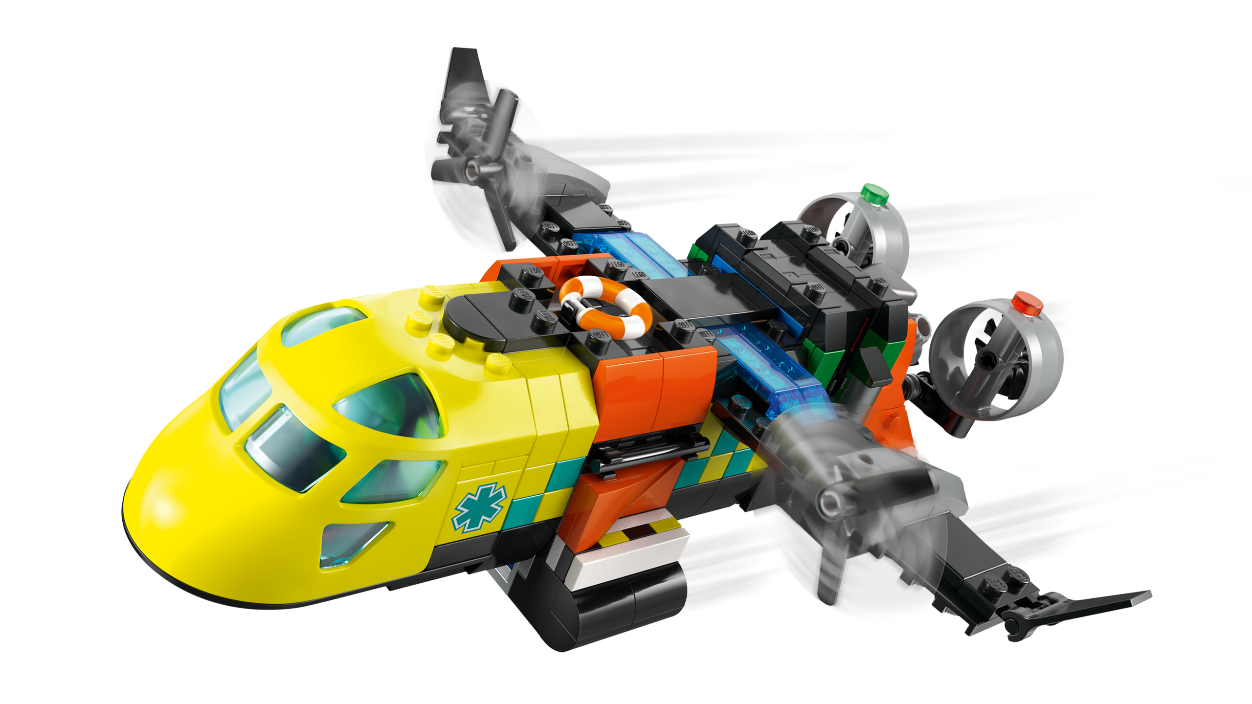 SISALDAB 3 IKOONILIST SÕIDUKIT – See mudelite komplekt sisaldab LEGO® City meditsiinilennukit, rannavalvehõljukit ja teenindusautot, lisaks meediku, rannavaluri ja mäepäästja minifiguure