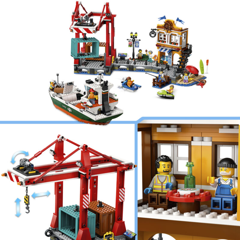• Mereäärne sadam ja kaubalaeva mänguasi – selle LEGO® City mereäärse sadama ja kaubalaeva mängukomplektiga saad 8-aastastele ja vanematele poistele ja tüdrukutele pakkuda hubast kaiäärset hõngu