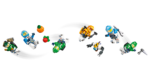 • Mis on karbis? – sisaldab mängukosmosejaama, kosmoselaeva, kosmoseratast ja toakapsleid, sealhulgas teaduslaborit, töökoda, kööki, magamisruumi ja biokuplit ning kuue astronaudi minifiguuri