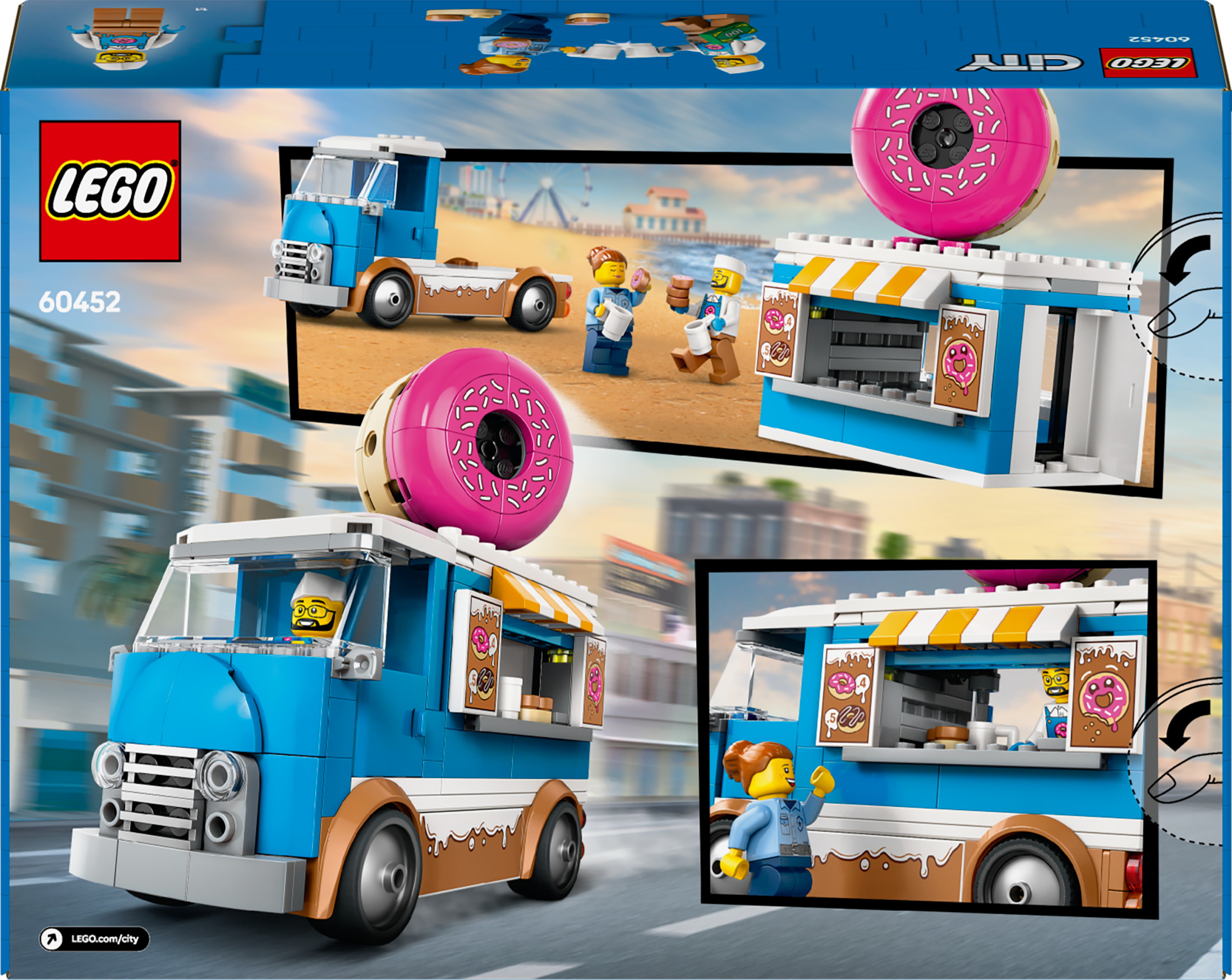 LEGO City sõõrikuauto mängukomplektiga (60452) on kaasas glasuurist kaunistus, hiiglaslik katusesõõrik ning ligipääsetav ettevalmistusala.