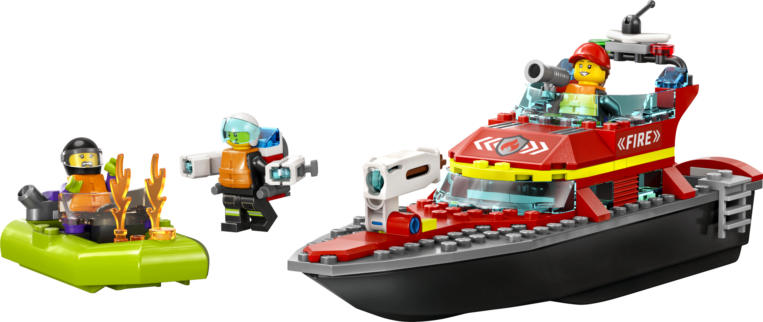 • Detailid ja funktsioonid – lapsed saavad tuletõrjepaadi kustutist ja tuletõrje-reaktiivseadmest välja lasta LEGO® vee-elemente