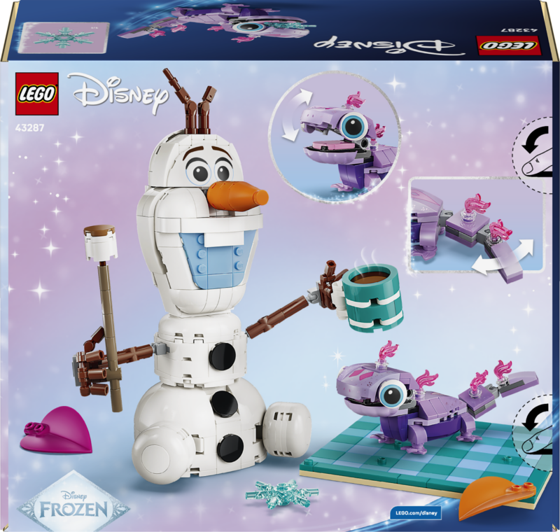 EHITATAV LEGO® LUMEMEMM – See lummav Olafi ja Bruni piknikulõbu (43287) lumememmega ehituskomplekt sisaldab LEGO ǀ Disney Frozen tegelasi Olafi ja Brunit, värvilist piknikutekki ja muudki