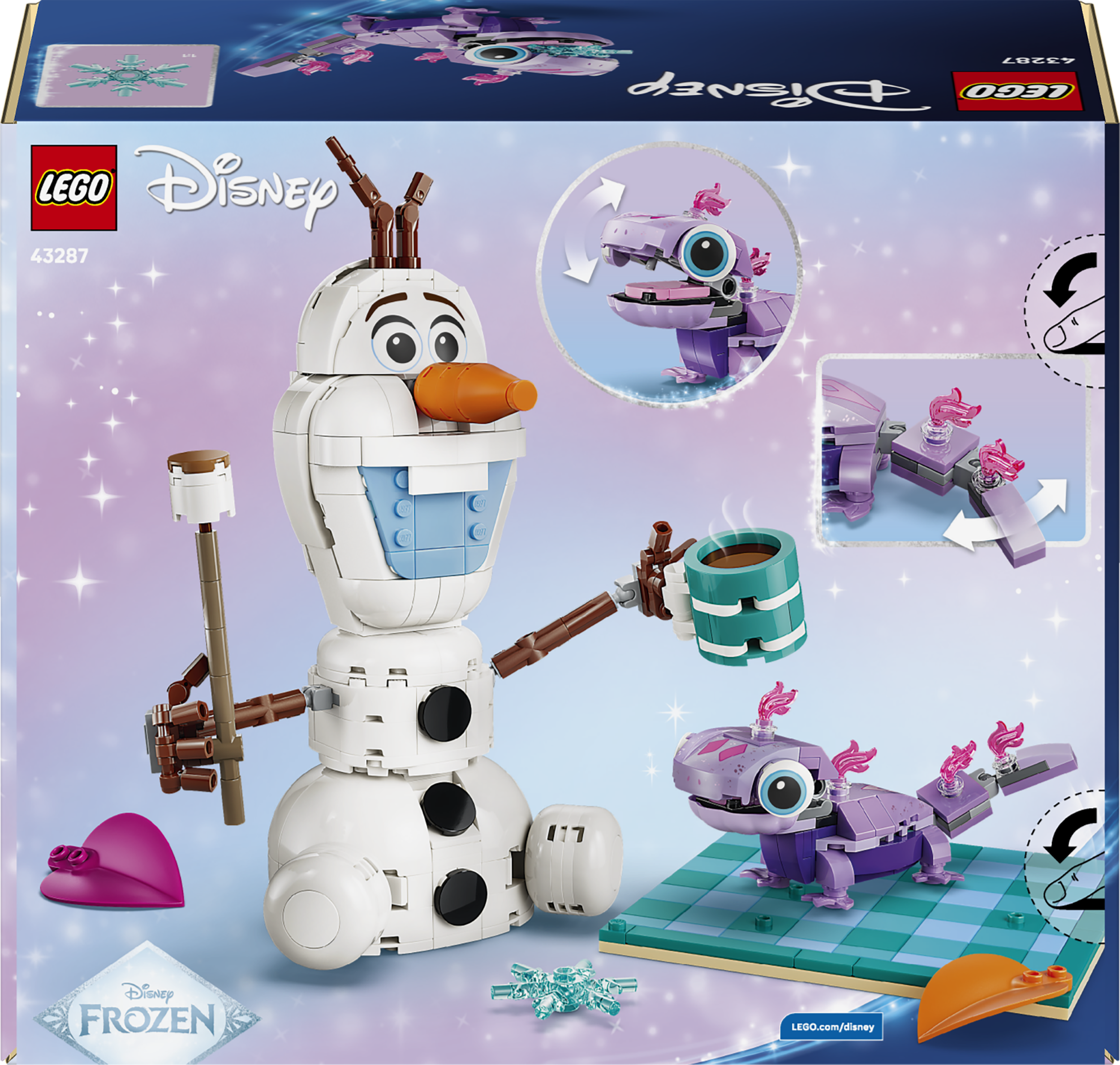 MÕÕTMED – See 478-osaline LEGO® ǀ Disney ehituskomplekt sisaldab Olafi tegelast piknikutekil, mis on 23 cm kõrge, 20 cm lai ja 15 cm sügav