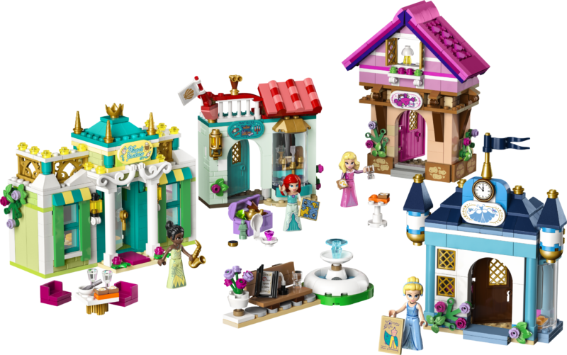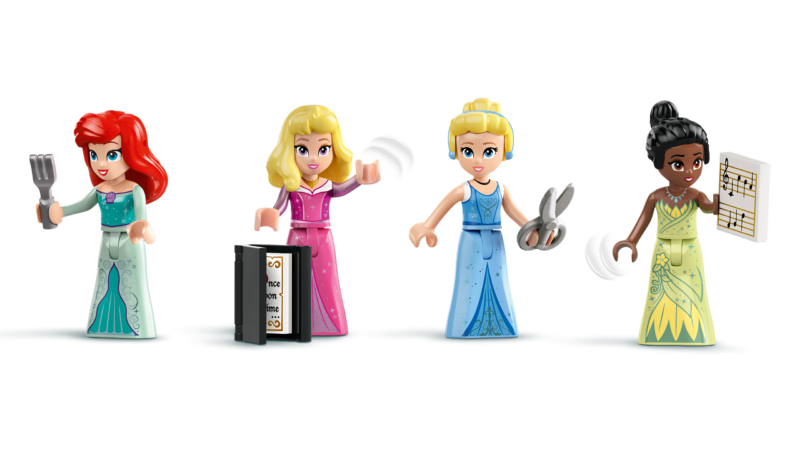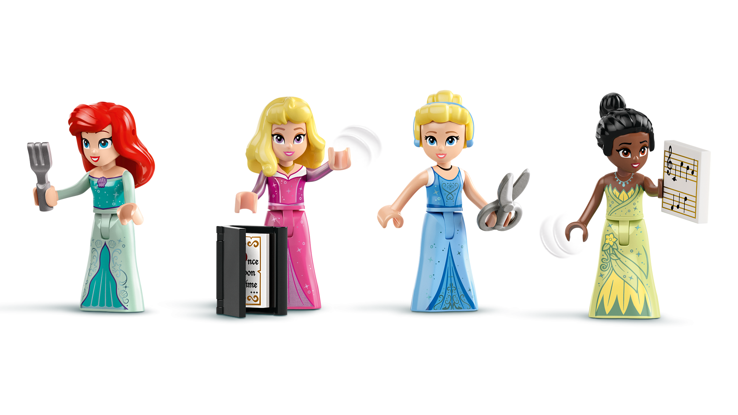 • Fantaasiarikkadvõimalused – sisaldab 4 hoonet, väiksemat ala lillepoti, pingi ja purskkaevuga ning Arieli, Aurora, Tuhkatriinu ja Tiana LEGO® ǀ Disney Princessi mininukufiguure