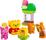 • 3 LEGO® DUPLO® kokkupandavat loomamänguasja – komplektis on kuulsad LEGO DUPLO Disney figuurid Karupoeg Puhh, Tiiger ja Notsu, kingitused ja puumaja, mis innustab lõbusat loovmängu