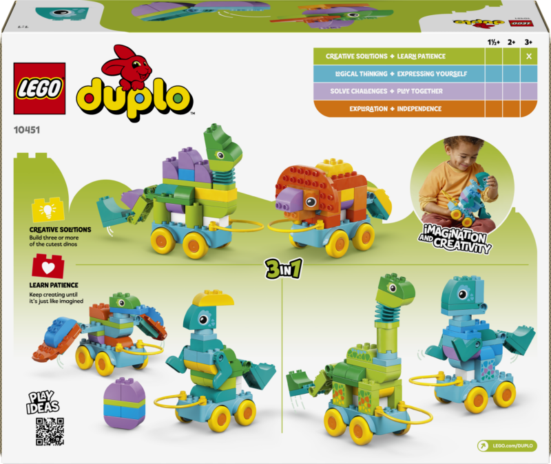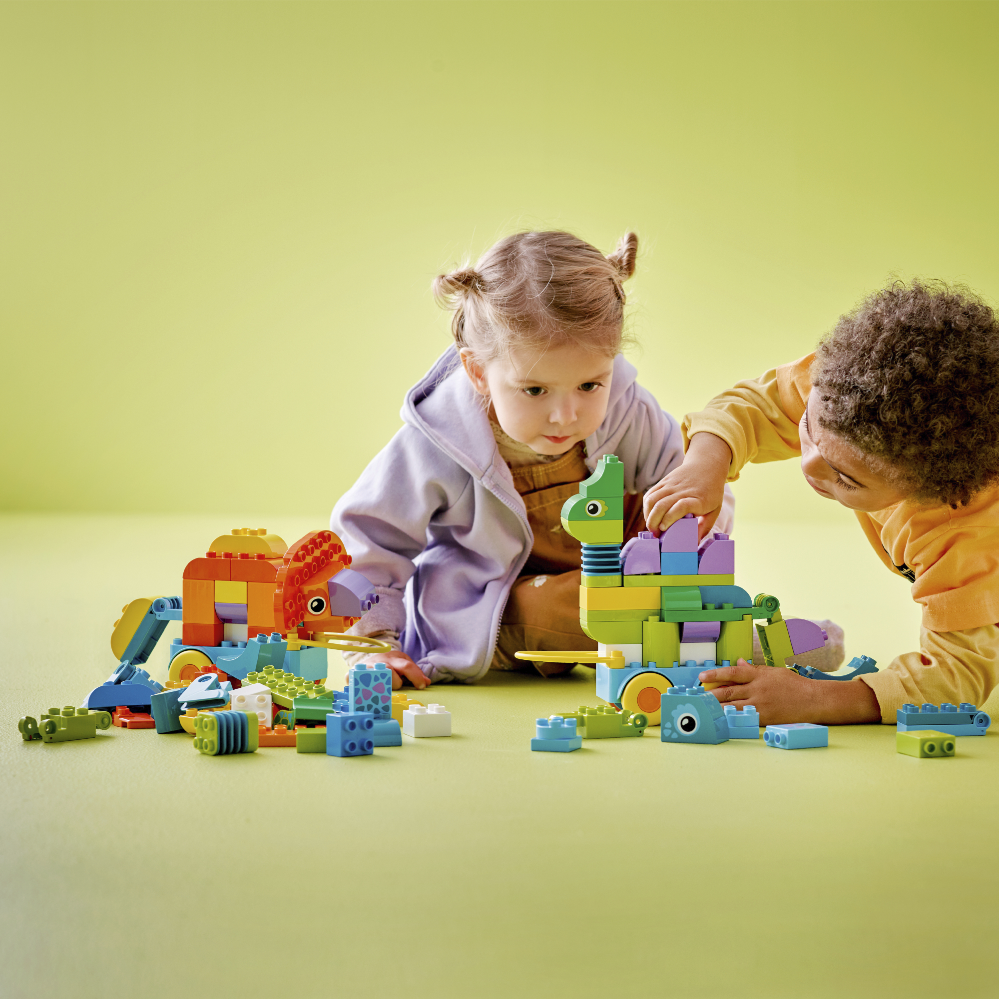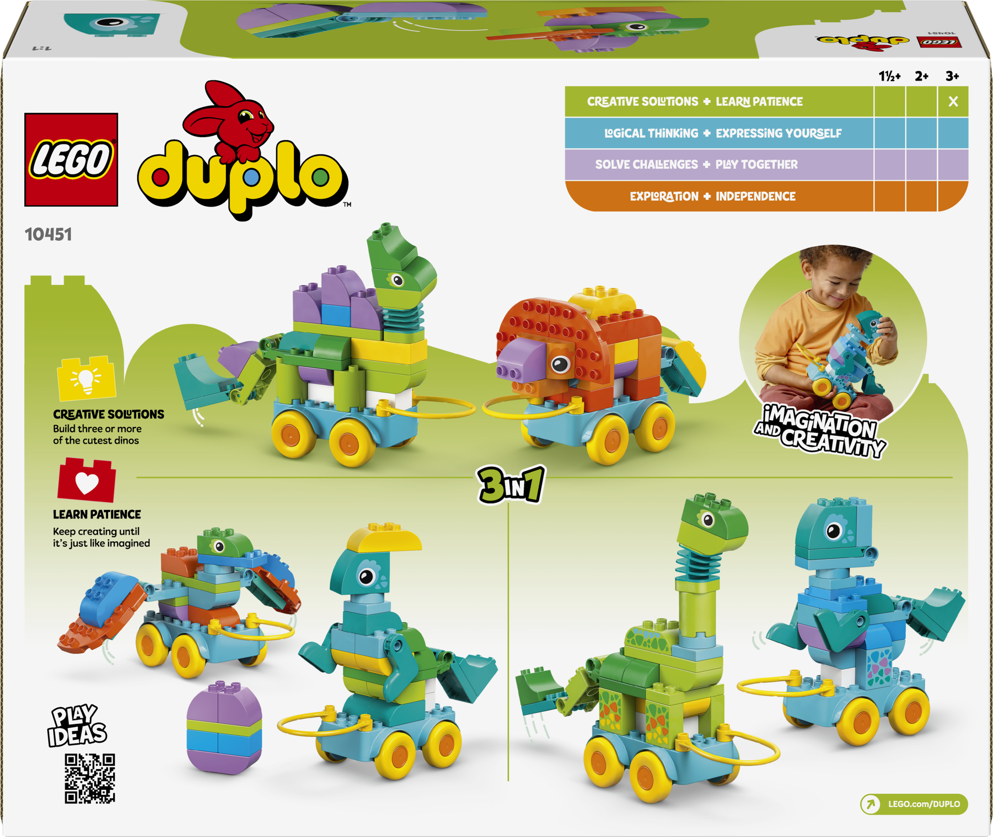 • Mudilaste mänguasi tundidepikkuseks loovmänguks – too koolieelikute mänguaegadesse erksaid värve ja piiritut loovust õppemänguasjaga LEGO® DUPLO® Town Kolm ühes: dinosaurused ratastel