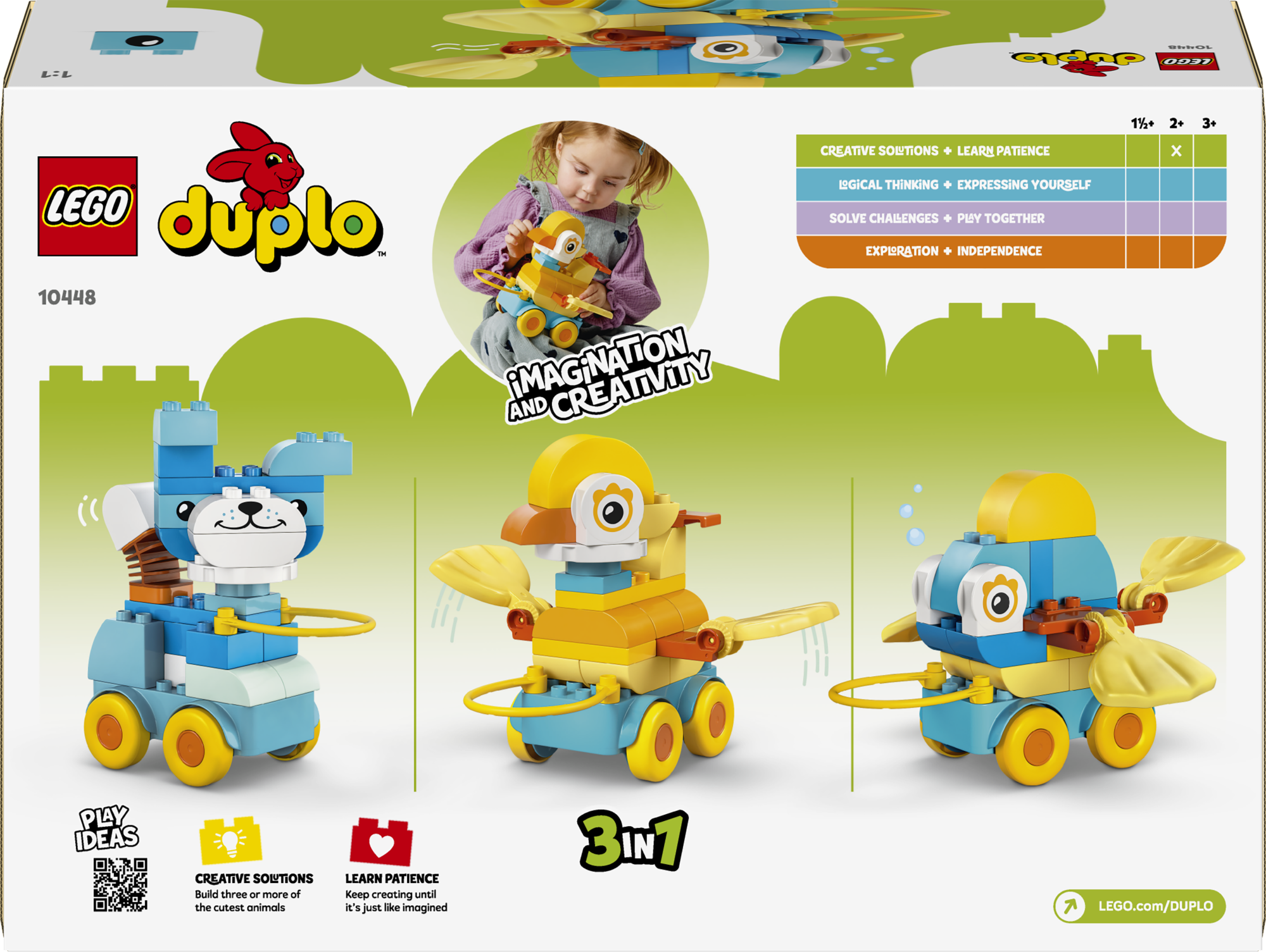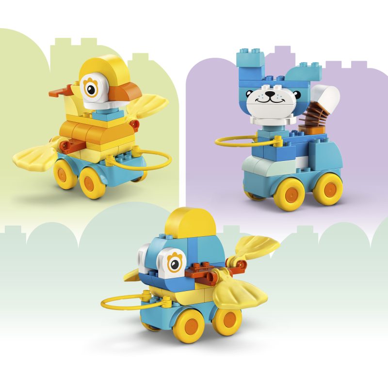 • Ehitusmänguasi tundidepikkuseks loominguliseks mänguks – too mudilaste mänguaegadesse värvi ja piiritut loovust mänguasjaga LEGO® DUPLO® Kolm ühes: loomad ratastel