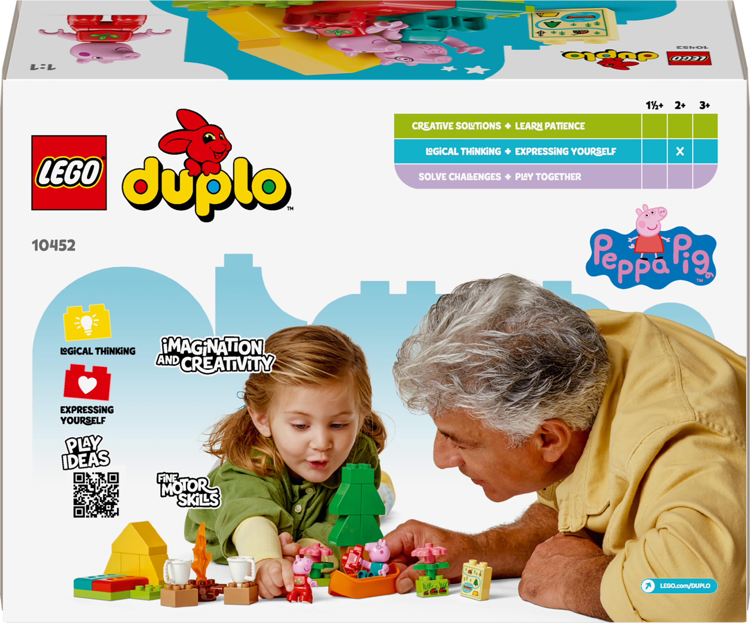 • Lõbus LEGO® DUPLO® seiklus väikelastele – koolieelikud aitavad Peppal ja Notsuissil laagri üles seada ja telgi püsti panna ning seejärel leiutavad loomingulisi lugusid kanuumänguasjaga