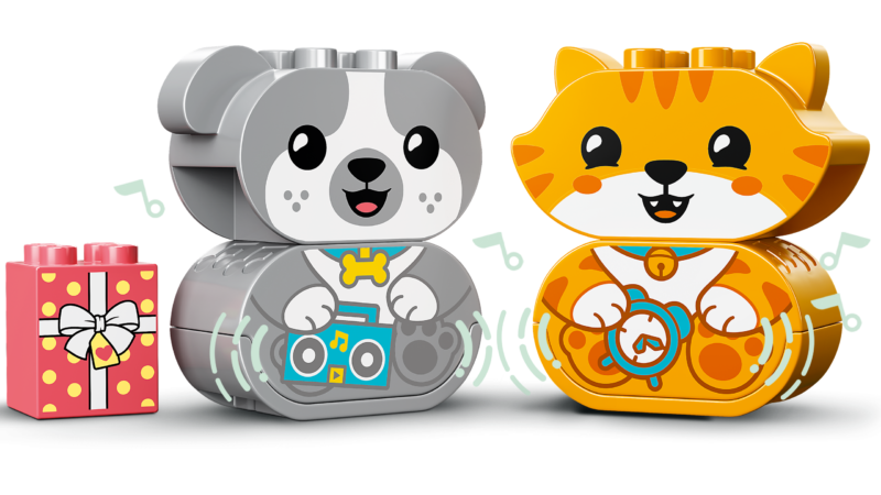 • Lemmikloomad koolieelikutele – mängukomplekt LEGO® DUPLO® minu esimene helidega kutsikas ja kassipoeg (10977) pakub loomi armastavatele väikelastele mängulisi võimalusi õppimiseks