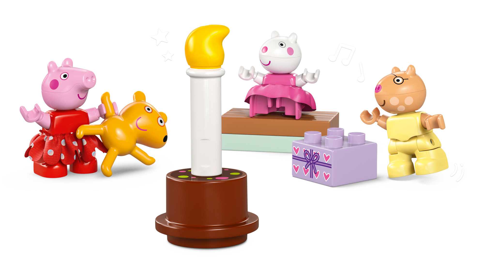 • Kolm tegelast ja palju tarvikuid – sisaldab Põrsas Peppa, Pedro Poni ja Lammas Leenu figuure, lisaks kaamerat, sünnipäevatorti, koogivormi, kingitust ja kaisukaru, et innustada loomingulist rollimängu
