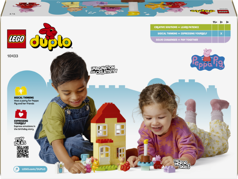 • Põrsas Peppa maja mänguasi alates 2-aastastele tüdrukutele ja poistele – eelkooliealised lapsed ja väikesed telesarja fännid on LEGO® DUPLO® Põrsas Peppa sünnipäevamaja mängukomplektiga peole kutsutud