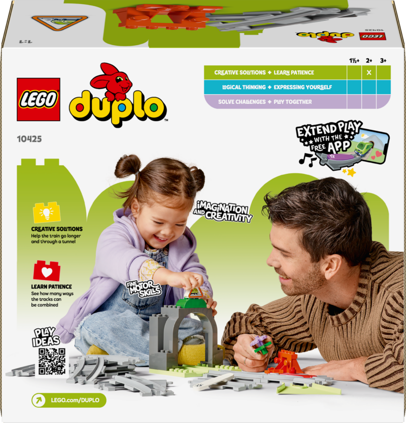• Rongirööpa mängukomplekt – alates 2-aastased väikelapsed saavad rongitunneli ja -rööbaste laienduskomplektiga laiendada oma LEGO® DUPLO® rongiseiklusi ja õppida uusi oskusi