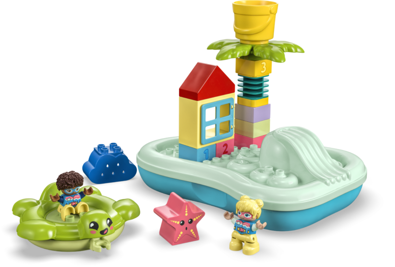 • Mänguasi, mis arendab kujutlusvõimet – lapsed arendavad oskusi ja õpivad numbreid vannis, kui nad laovad klotse, et puu kasvaks, ja avastavad minifiguuriga koos veepargi lõbusaid detaile.