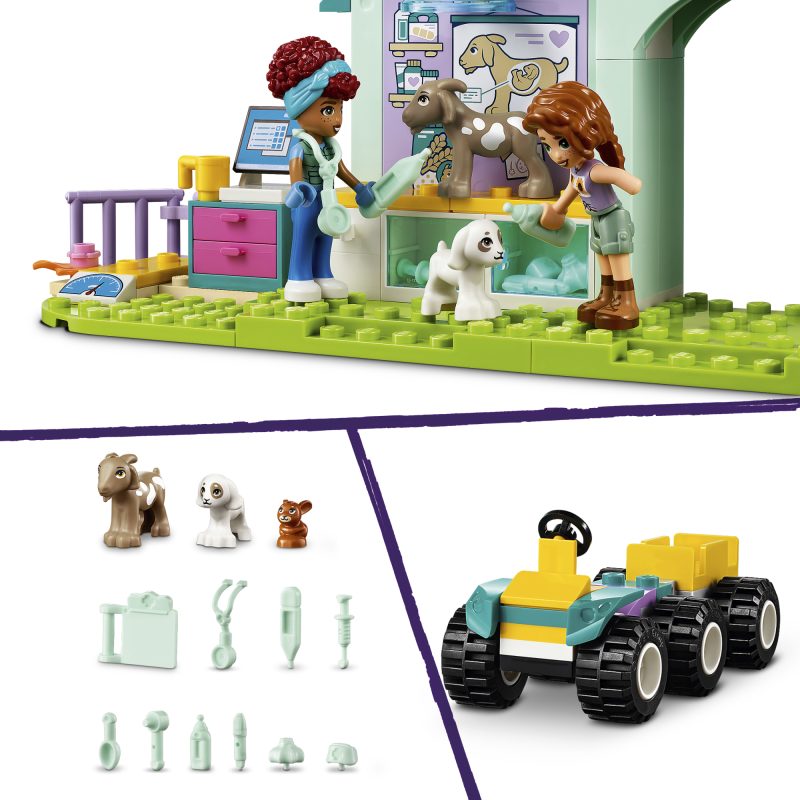 • LEGO® Friends farmiloomade loomakliiniku mänguasi – komplekt sisaldab kahte mininukku, kolme loomafiguuri ja palju mängutarvikuid tüdrukutele, poistele ja lastele vanuses 4+, kes armastavad loomade eest hoolitseda