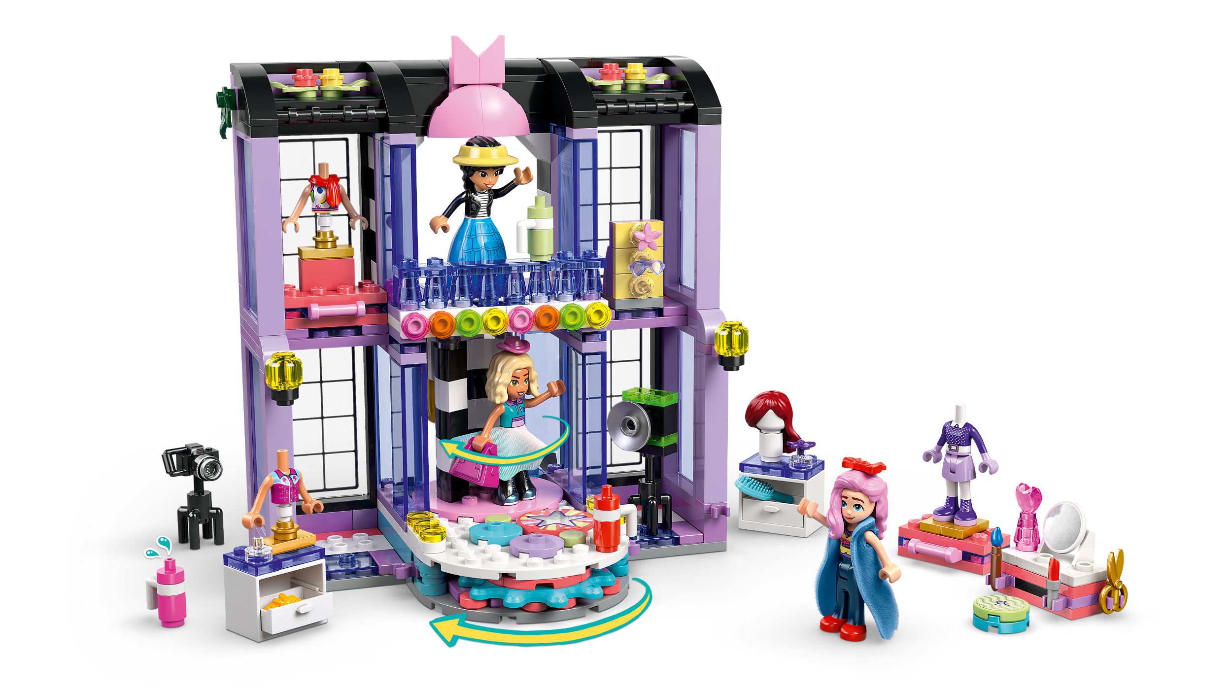 3 LEGO® FRIENDS TEGELAST – Selle moe- ja riietumismänguasjaga kaasas on 3 mininukku – Paisley, Liann ja Nova –, keda saab peeglilaua ees sättida ja seejärel pöörlevale platvormile asetada, et näha nende riietust