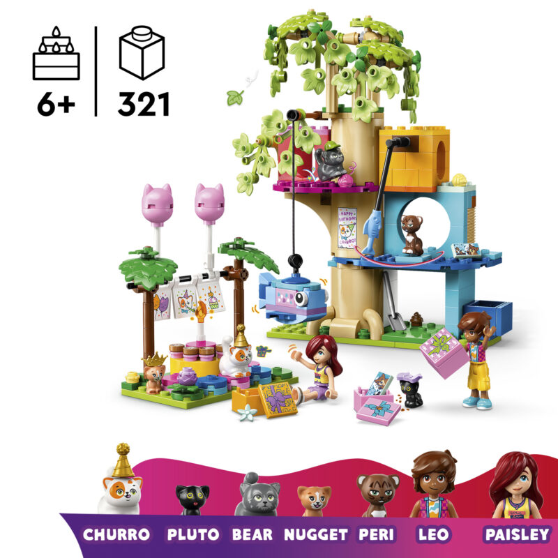 • Loo lugusid LEGO® Friends tegelaskujudega – selle matkimiskomplektiga on kaasas Leo ja Paisley mininukud, 5 kassifiguuri, kokkupandav kassi puuonn ja kokkupandav sünnipäevatort