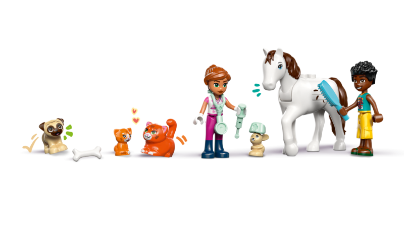 LOOMADE HOOLDAMINE – LEGO® Friends loomakliinik (42696) sisaldab kõike, mida lapsed vajavad loomade eest hoolitsemise lugude jutustamiseks, sealhulgas mänguhobuste tall, läbivaatusruum, loomade mänguväljak ja palju muud