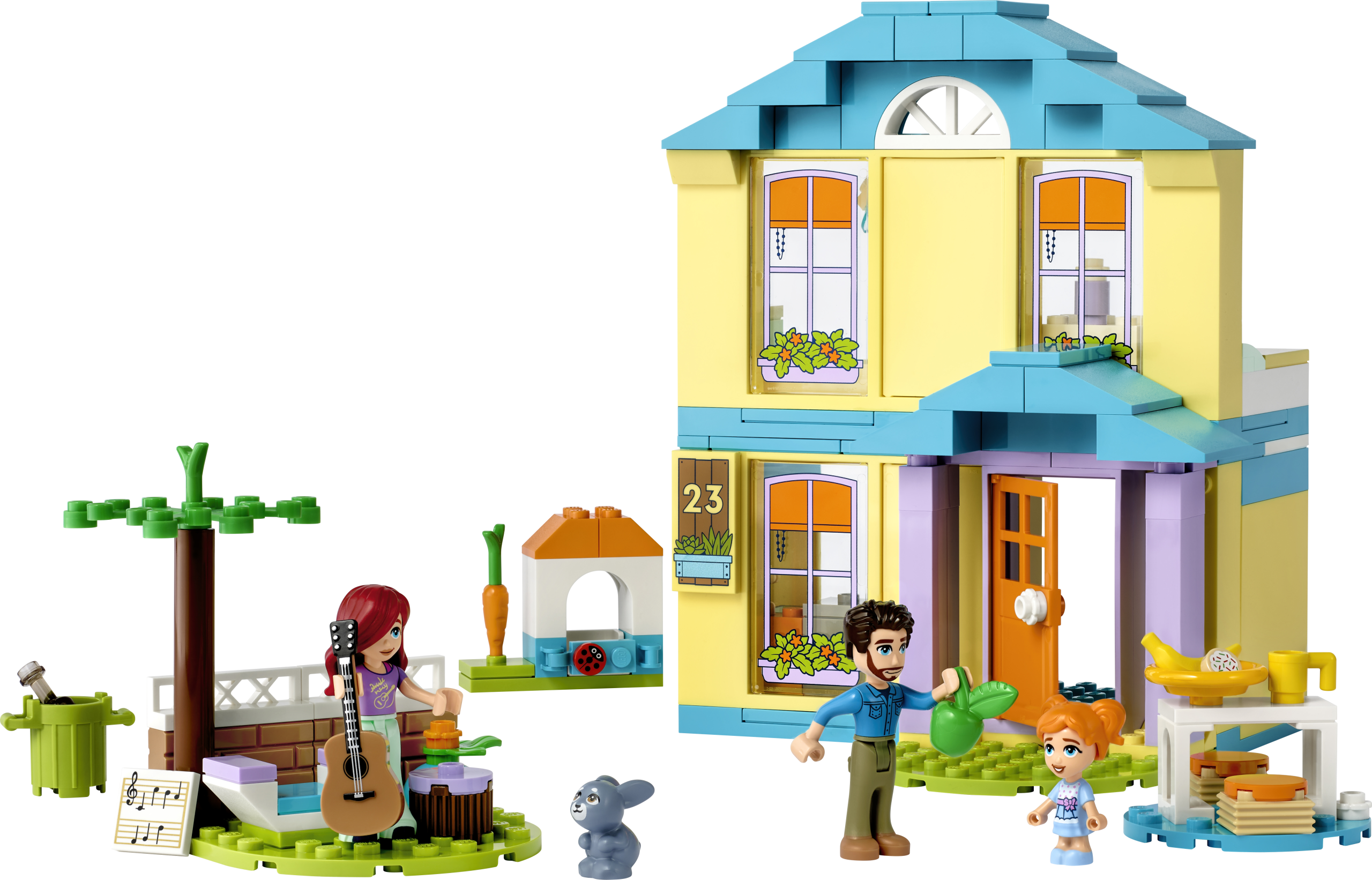 • Sõprusest pakatav maja – selles kahekorruselises LEGO® Friends majas on köök, magamistuba, vannituba, õues asuv söögiala, lisas hubane õuenurk, kus tagasihoidlikule Paisleyle meeldib puhata