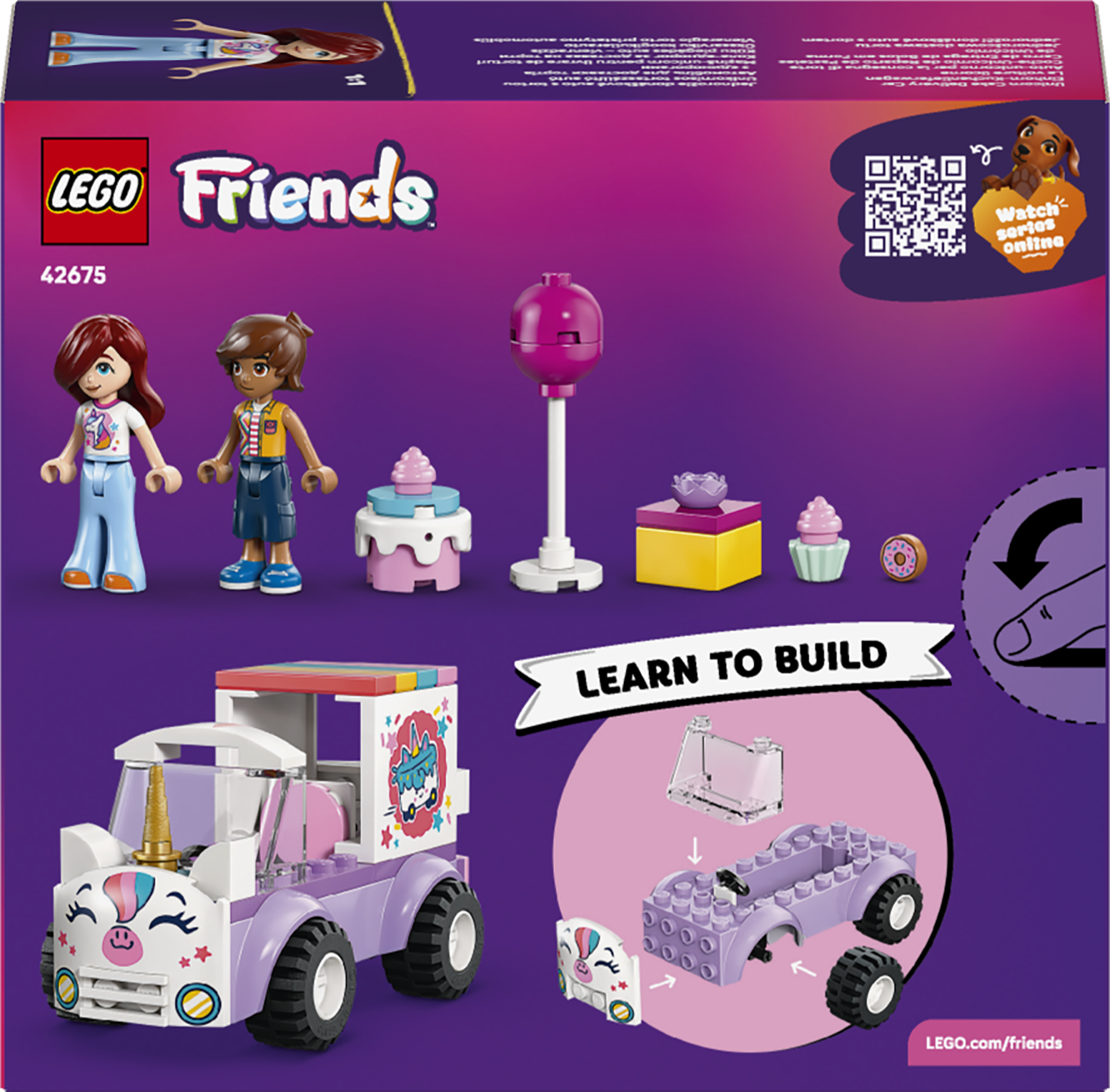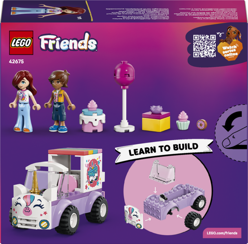 SÜNNIPÄEVA MÄNGUASJAD – LEGO® Friends Ükssarviku koogikullerauto 42675 avab eelkooliealistele terve hulga õppimistegevusi, nagu lugude jutustamine sünnipäevakingituse, koogimänguasja, õhupalli ja sõõrikuga
