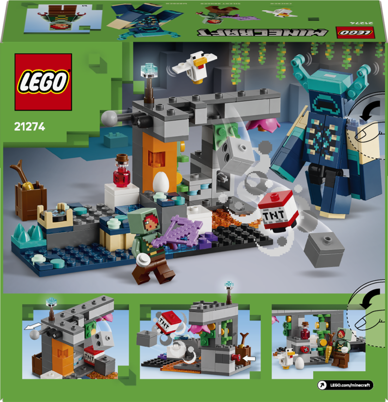 Kohtumine Ülevaatajaga (21274) on LEGO® mängurite mänguasi, mis viib Minecraft® mängijad põnevale kaevandusseiklusele sügavasse pimedasse lopsaka taimestikuga koopasse