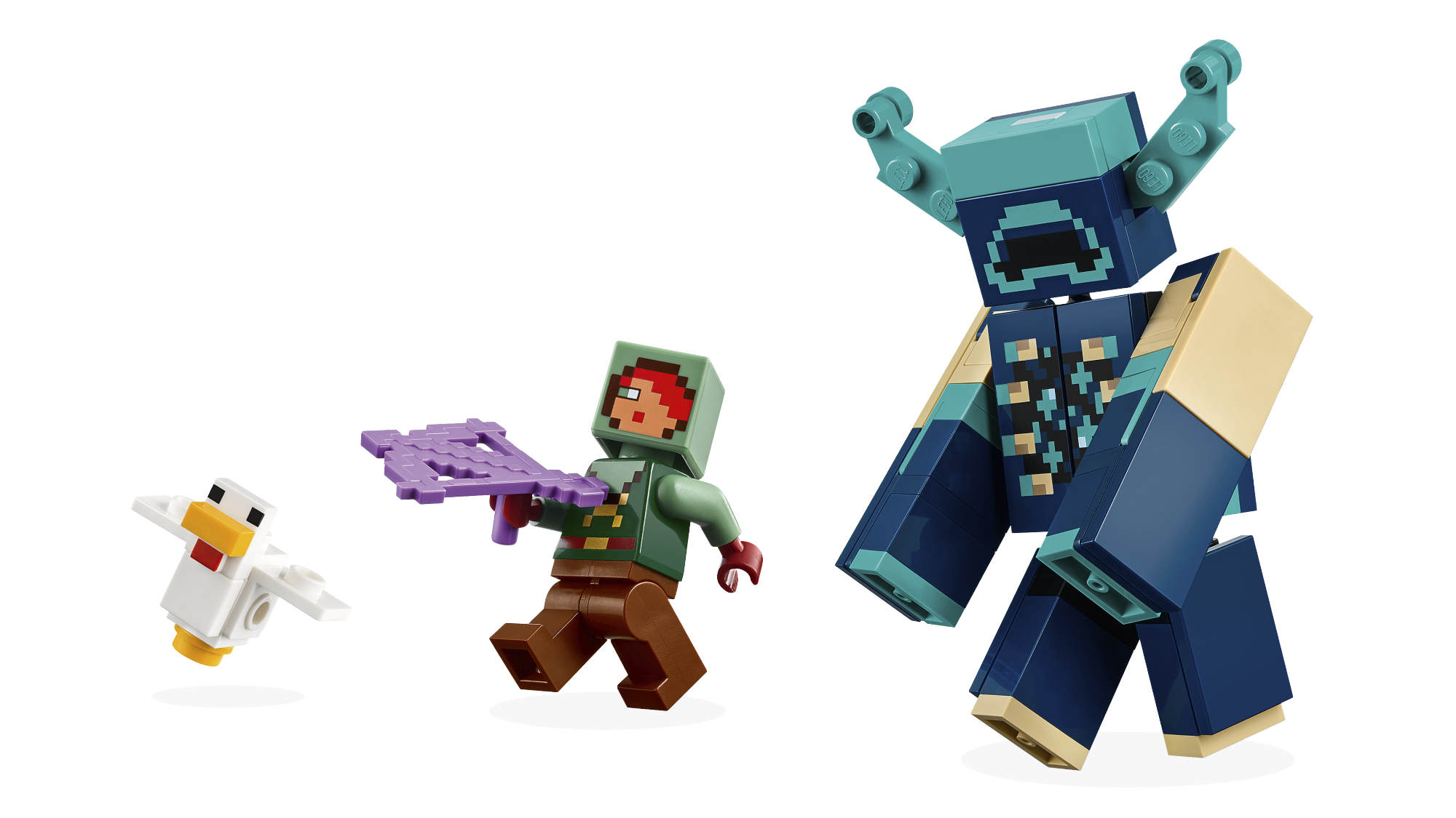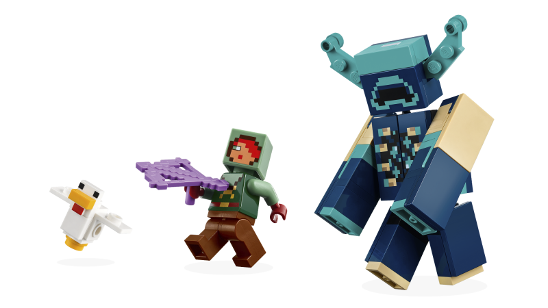 • Minecraft® mängufiguurid – selles LEGO® komplektis on Minecrafti Vaikse Ratsaniku minifiguur, Minecrafti kana ja suur kokkupandav Minecrafti Ülevaataja mänguasi, millel on muudetava asendiga pea, käed ja jalad