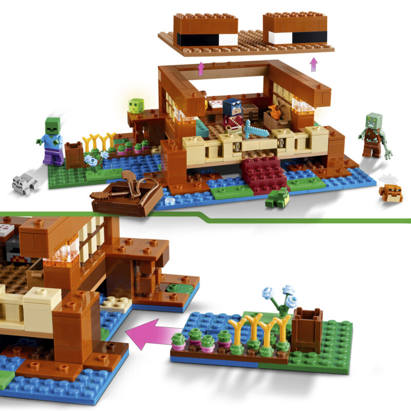 See LEGO Minecraft mängumaja (21256) on konnakujuline ja kaasas on mängu populaarsete tegelaste figuurid