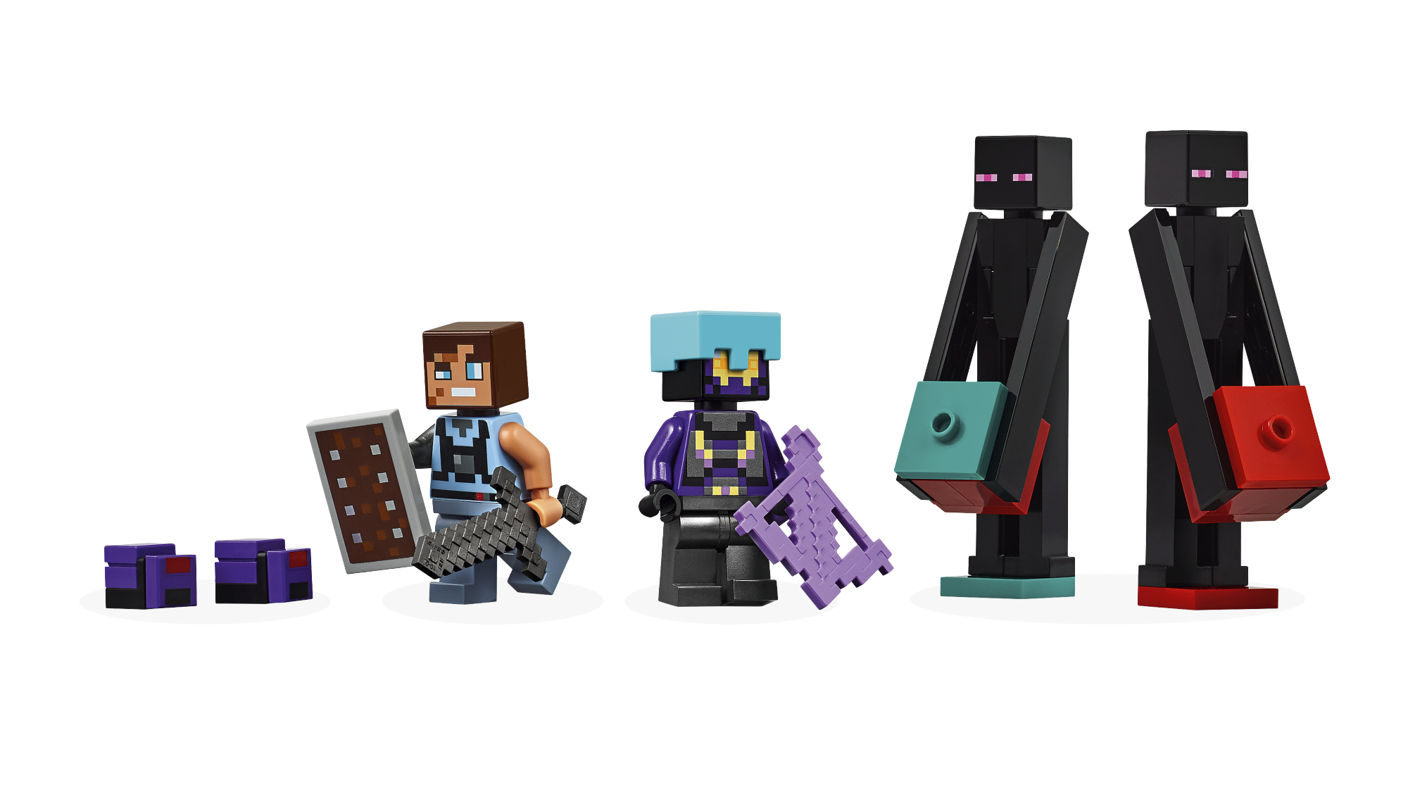 • Kogutavad videomängufiguurid – komplektis on dimensioonide kaitsja, kuningriigi rüüstaja, kaks Lõpumehe minifiguuri ja kaks endermiidi figuuri, nõiutud amb ning neteriidist mõõk ja kilp