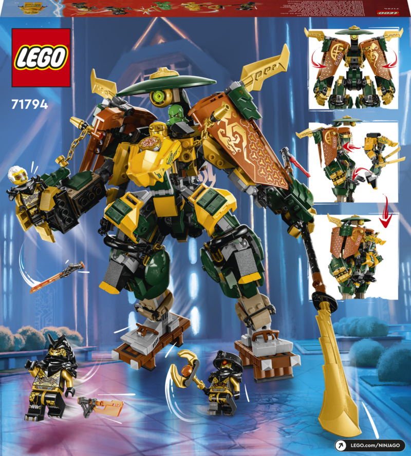 • Unikaalne kahe robotiga mängukomplekt – alates 9-aastased ninjafännid saavad komplektiga Lloydi ja Arini ninjatiimi robotid (71794) taasluua treeningu- ja lahingustseene NINJAGO® telesarjast „Dragons Rising“