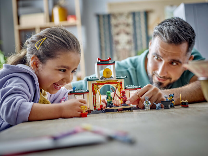 Rõõmusta ninjamänguasju armastavaid lapsi LEGO NINJAGO Ninja Spinjitzu templiga (71831).