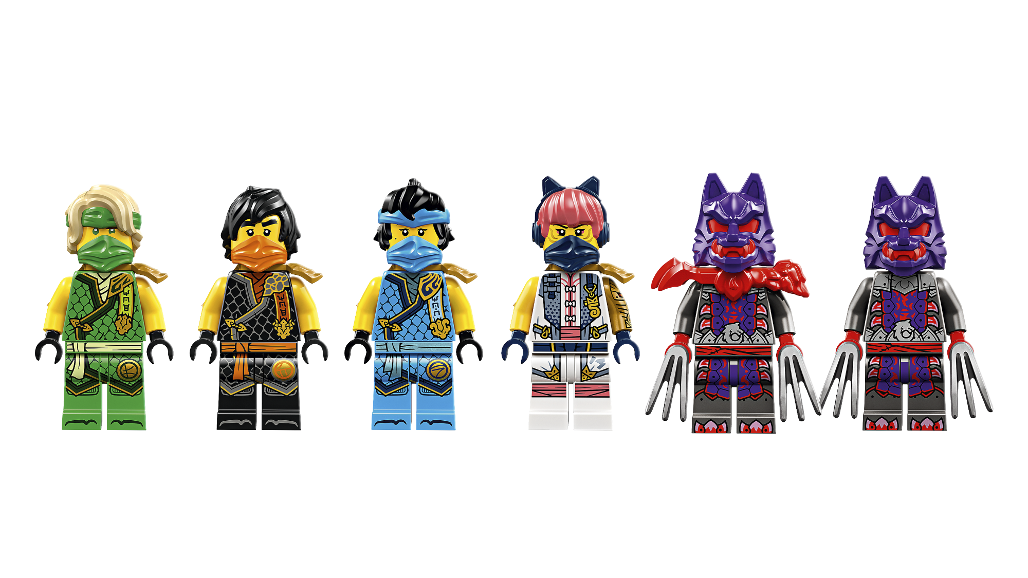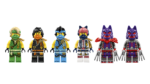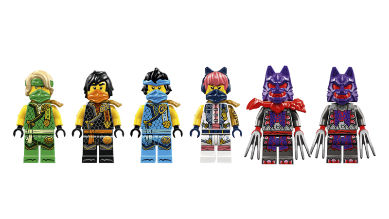 • Kuus NINJAGO® minifiguuri – ninjamängukomplektiga on kaasas ninja Sora, Lloyd, Nya ja Cole ning Hundimaskis sõdalane ja Hundimaskis kindral