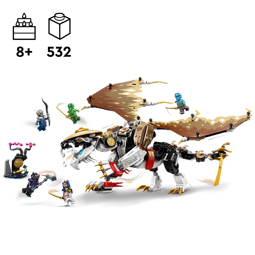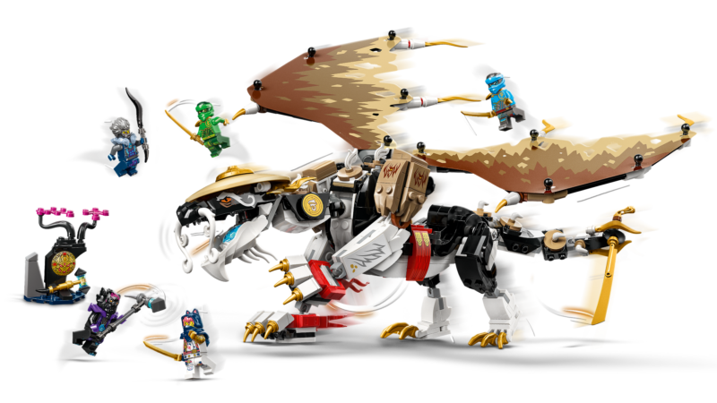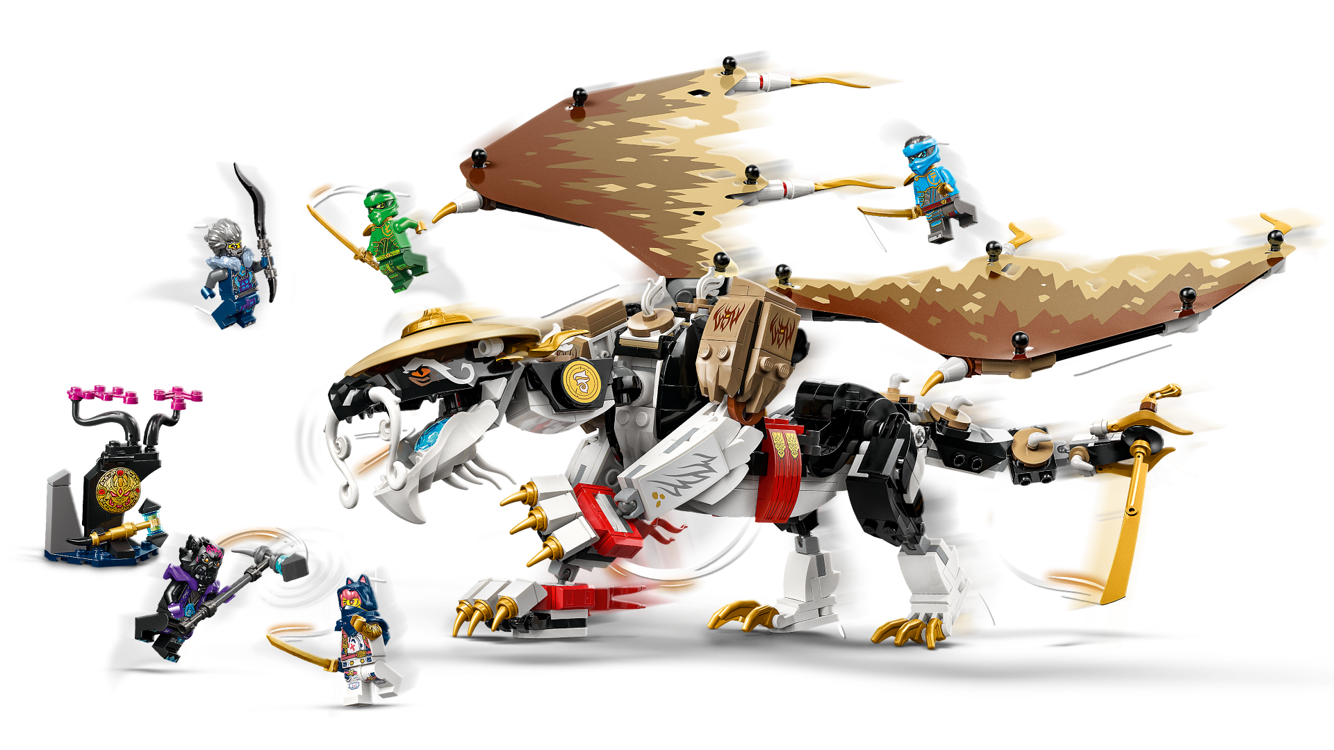 • Liigutatav draakonimänguasi – lapsed saavad taasluua stseene telesarja „NINJAGO® Dragons Rising“ 2. hooajast koos valitsejadraakoniga, millel on liigutatav pea, saba, jalad, käed ja kokkukäivad tiivad