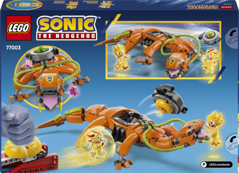 • Kogutav Sonicu mängukomplekt – komplektis on klotsidest kokkupandav, muudetava asendiga Biolizardi figuur, kiire kera ja selle heitja ning 2 minifiguuri: Super Shadow ja Super Sonic
