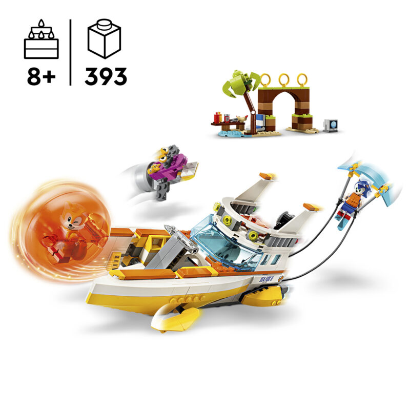 • Sonicu mänguasi lastele – hellita poisse, tüdrukuid ja fänne vanuses üle 8 aasta selle tegevusterohke Tailsi seikluspaadi komplektiga, mis võimaldab lastel luua lugusid oma lemmiktegelastega Sonic the Hedgehog™-iga