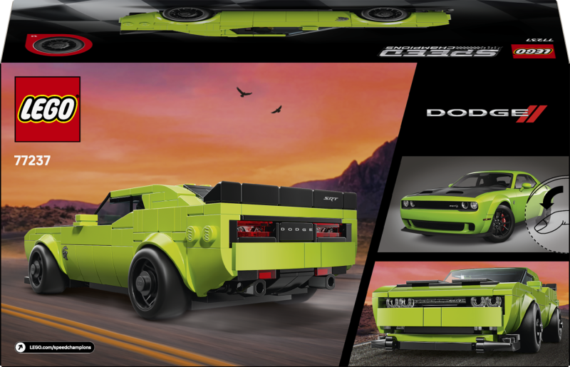 Poisid ja tüdrukud saavad seda ülidetailset LEGO Speed Champions Dodge Challenger SRT Hellcati sportautot (77237) koguda, ehitada, sellega mängida ja seda esitleda