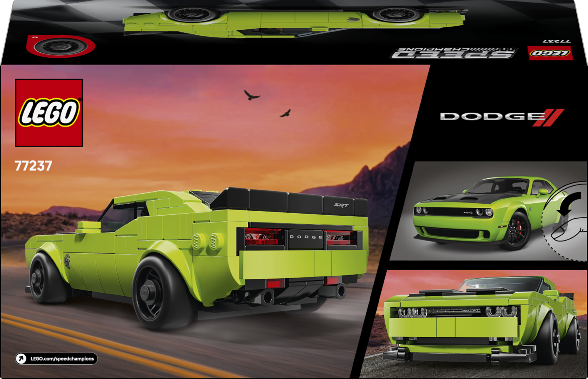 • Muskelauto mänguasi lastele – alates 9-aastased poisid ja tüdrukud ning muskelautode fännid saavad seda LEGO® Speed Champions Dodge Challenger SRT Hellcati sportautot ehitada, esitleda ja sellega võidu sõita