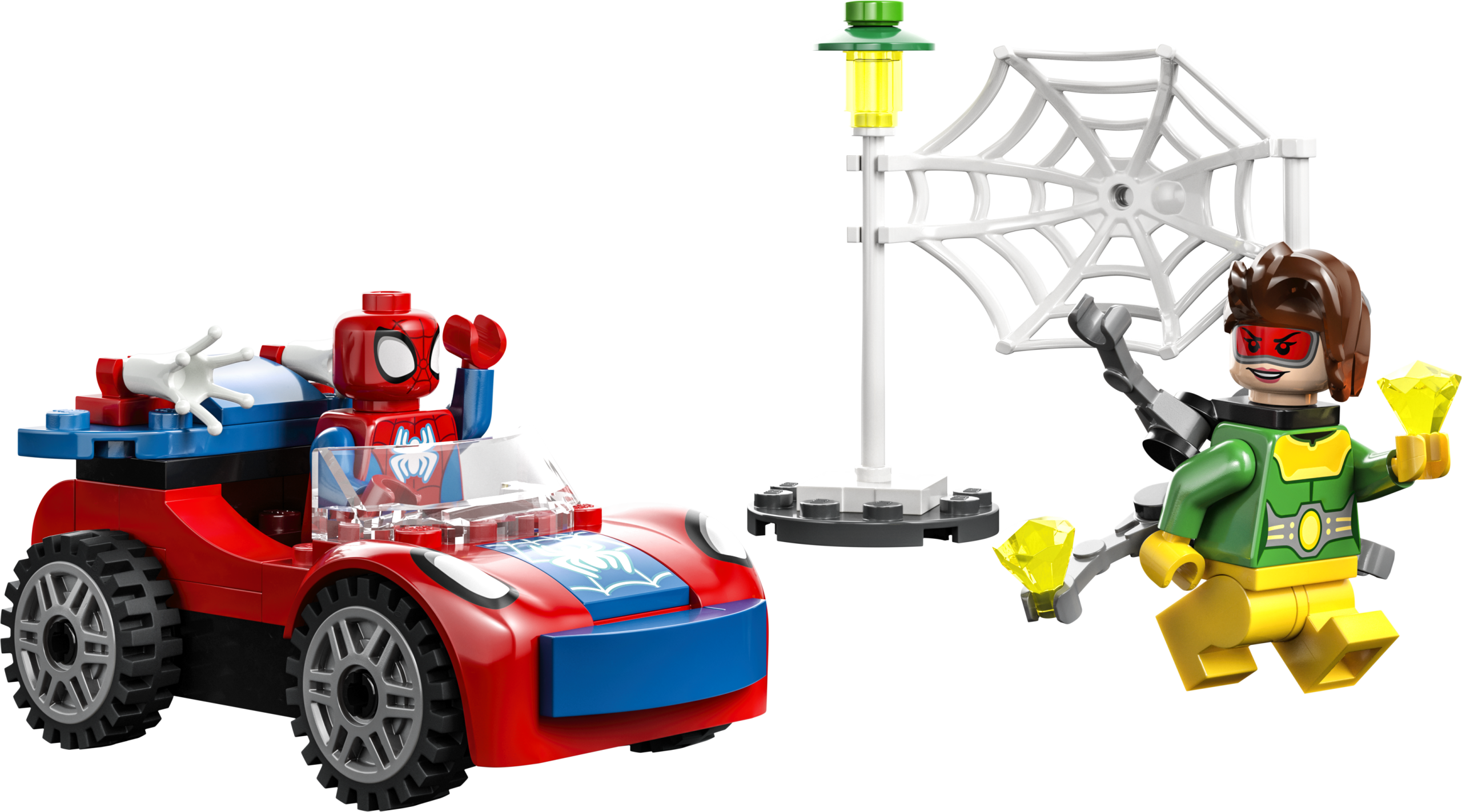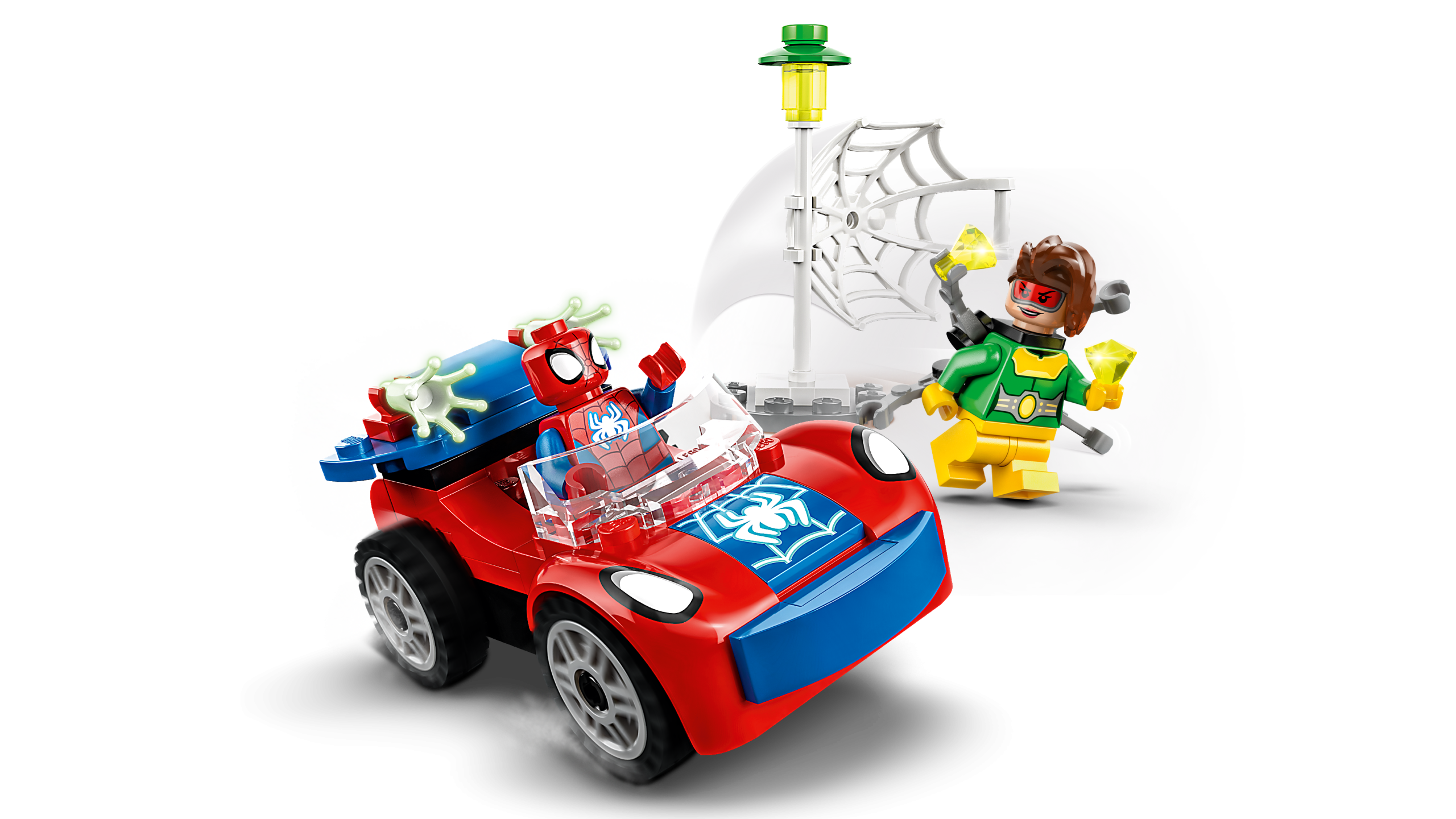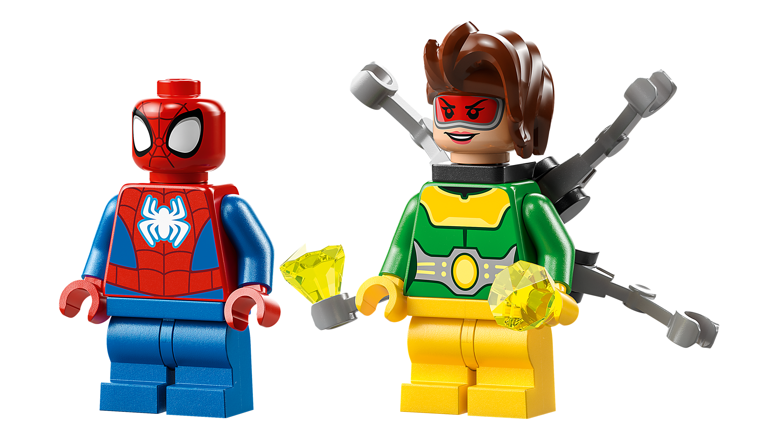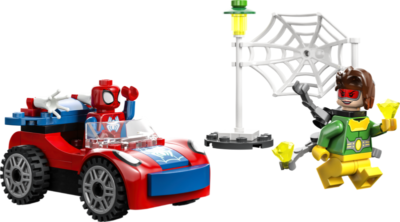 • Legendaarsed tegelaskujud – komplektis on Spidey ja Doc Ocki minifiguurid ja Spidey auto, millel on kaks pimedas helendavat võrguelementi ja autoraami põhiklots, mis julgustab algajaid ehitajaid