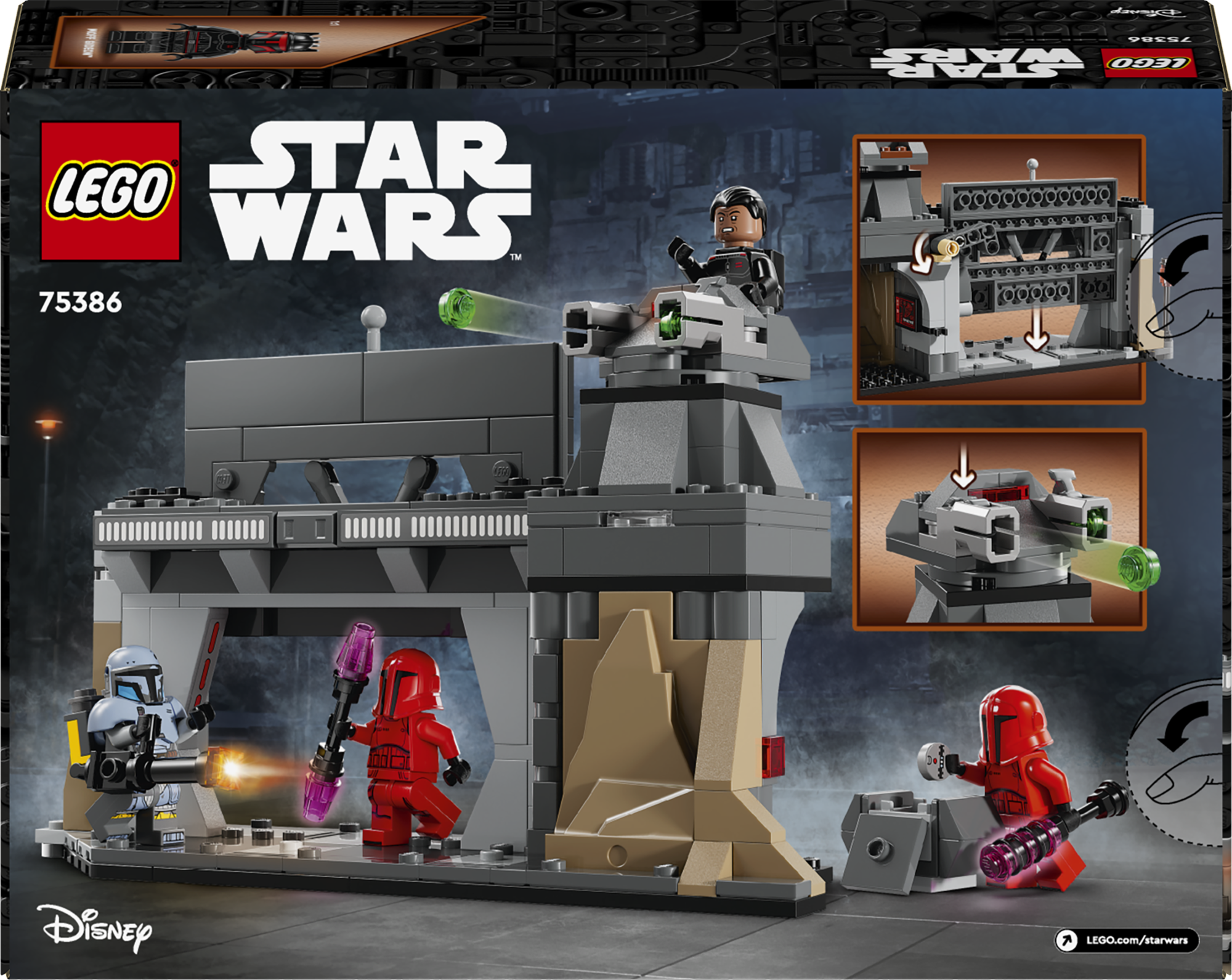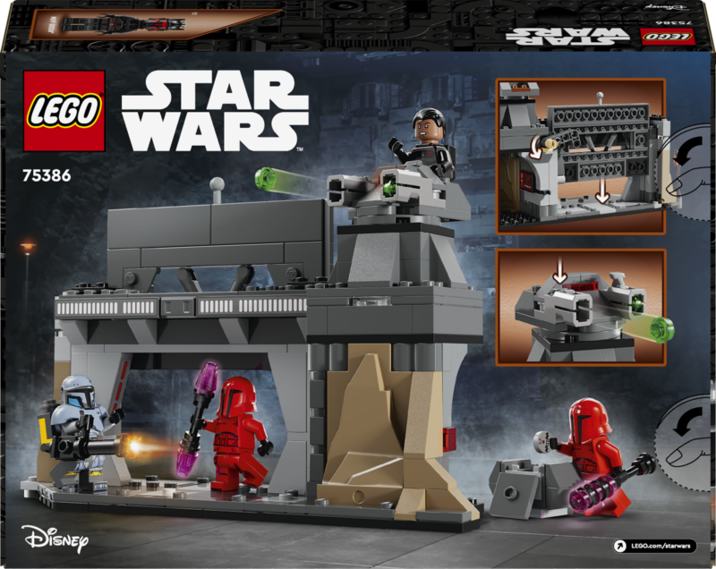 • Star Wars™-i ehitusmänguasi lastele – selle komplekti Mandalore’i baasil on tugevalt soomustatud uks, millel on sulguriga päästik ja juhtpaneelid, lisaks pöörlev nupse tulistav kahuritorn