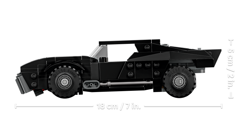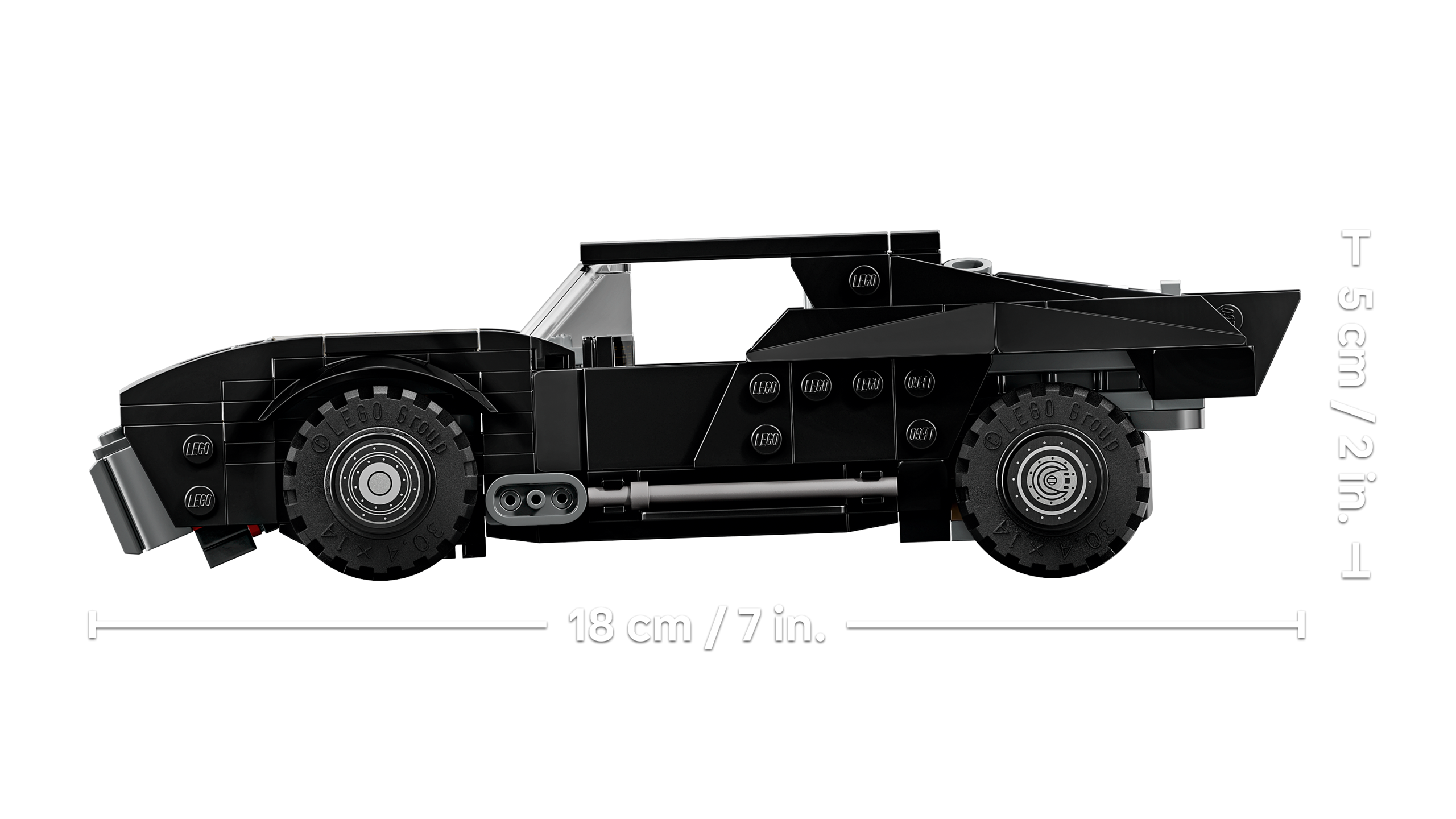 Mõõdud – 330-osaline LEGO® DC Batman™: The Batman™ Batmobiil™ on 5 cm kõrge, 18 cm pikk ja 8 cm lai